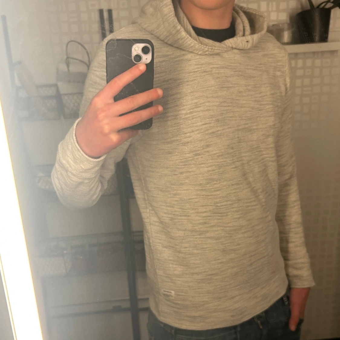 Säljer nu min riktigt feta beige/grå stickade hoodie från märket Jack and Jones som inte går att få tag på längre. Den är o bra skick och passar perfekt som ett underplagg på hösten och passar även perfekt till kyligare vinterkvällar