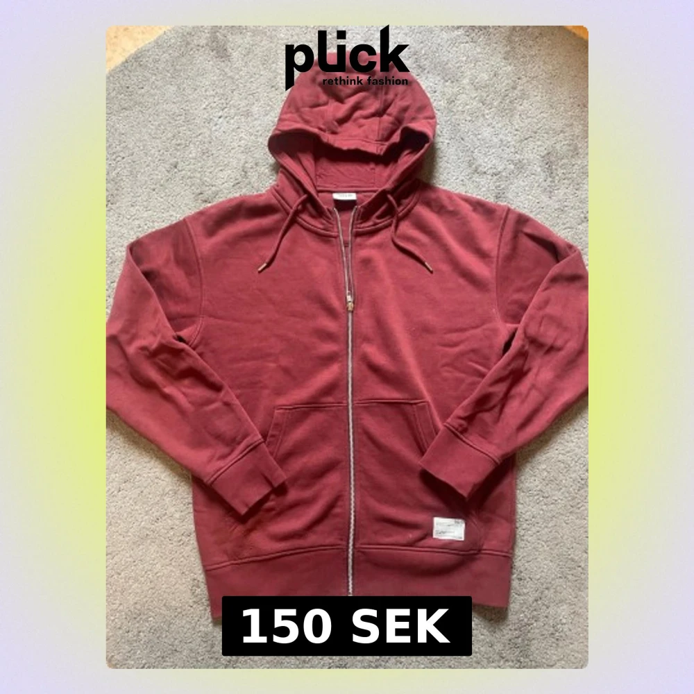 Snygg vinröd hoodie från Solid med dragkedja framtill, två stora fickor och justerbar huva med snören. Tillverkad i mjukt bomullsmaterial som känns skönt mot huden. Perfekt för en avslappnad och stilren look. Storlek S men passar som M ungefär
