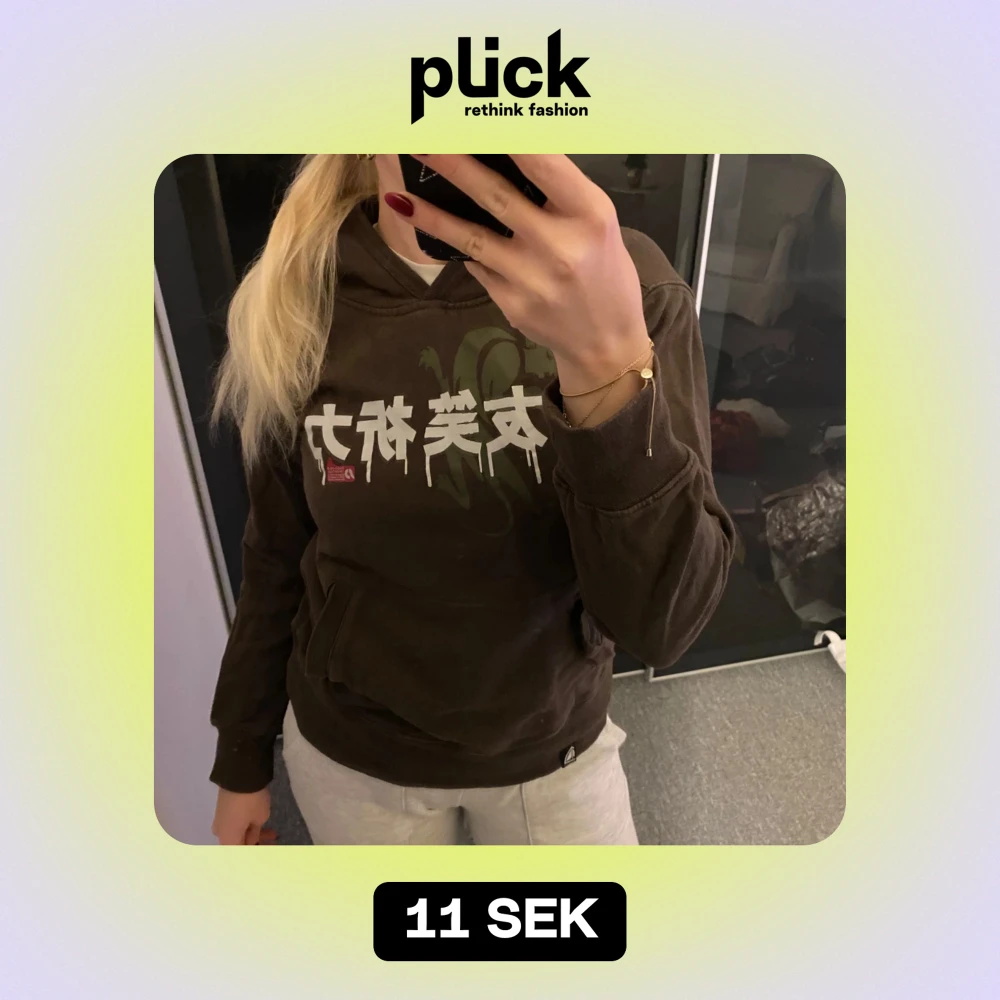 Säljer en brun hoodie med coolt tryck i vitt och grönt. Den har en känguruficka och är perfekt för en avslappnad stil. Passar bra till både vardag och chillkvällar. Grymt skön och i bra skick!