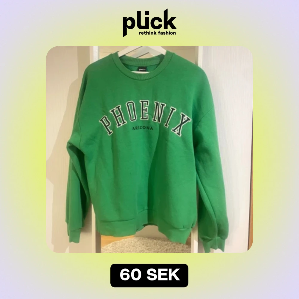 Grön collegetröja i fin grön färg. Färgen gör sig inte riktigt rätta på bild, så skriv om ni vill ha en bättre bild. Köpt från Ginatricot för något år sedan. Använt ett fåtal gånger, så utmärkt skick.