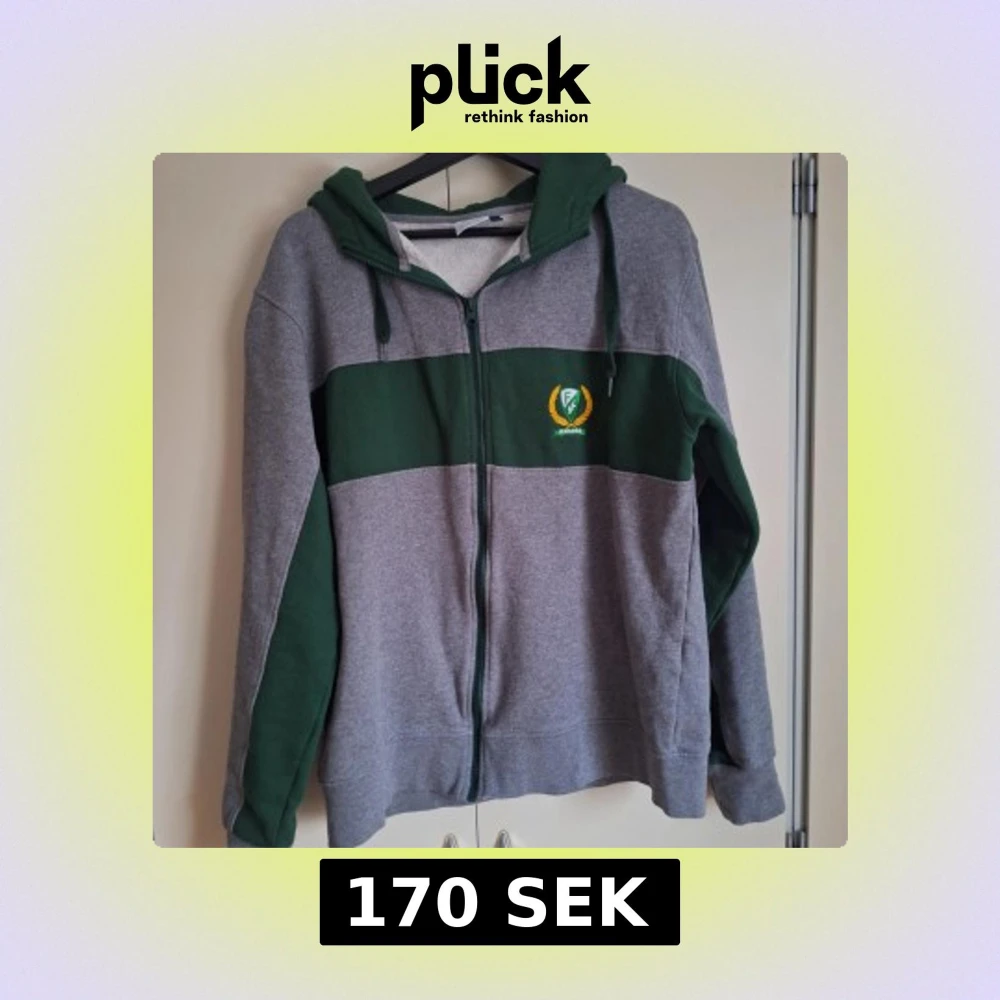 Säljer en grå och grön hoodie med dragkedja från SHL. Tröjan har en grön huva och ett FBK emblem på bröstet! 🤍💚