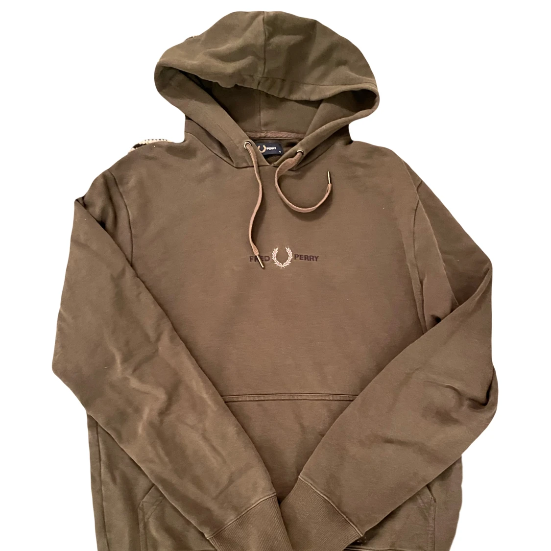 Säljer en snygg grön hoodie från Fred Perry med klassisk logga på bröstet. Tröjan har en bekväm passform med långa ärmar och en praktisk huva med dragsko. Perfekt för en avslappnad stil.