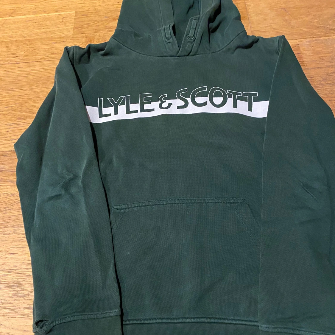Säljer en snygg grön hoodie från Lyle & Scott med deras logga tryckt över bröstet. Tröjan har en klassisk design med huva och långa ärmar. Perfekt för en avslappnad stil.