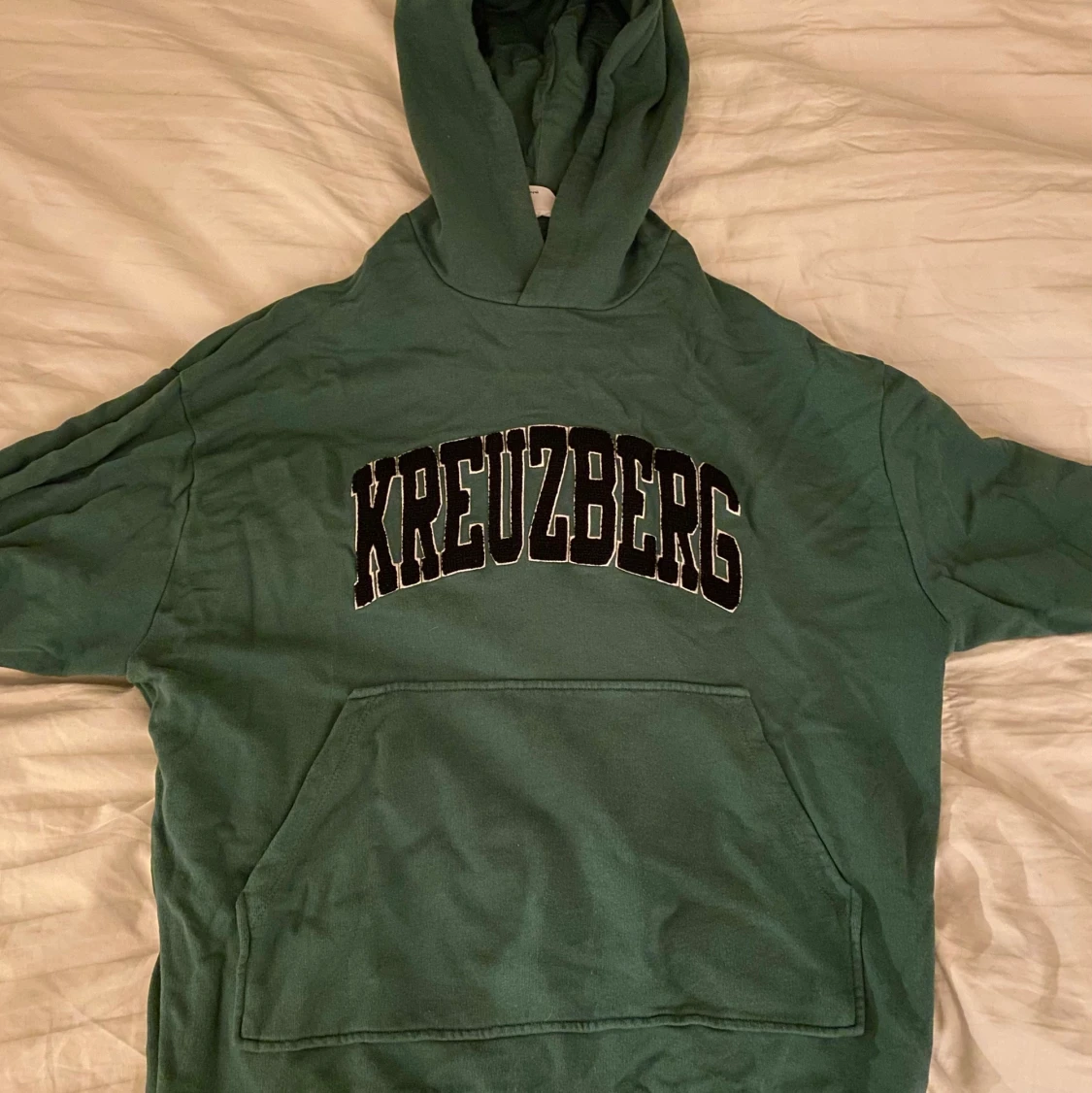Asos hoodie i jättefin grön färg o snyggt tryck!! Använd endast ett fåtal gånger. Den gröna färgen är som på bilderna från hemsidan💕💕
