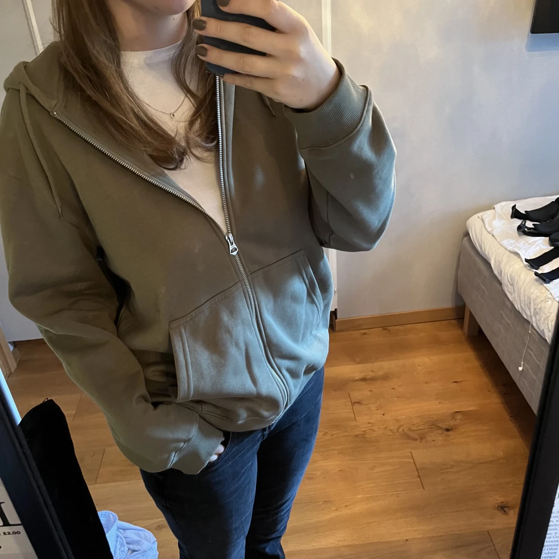 En zipHoodie i storlek M från Weekday, aldrig använd och super fint skick. Nypris 400kr. Hör av dig om du är intresserad. Köparen står för frakt💕✨