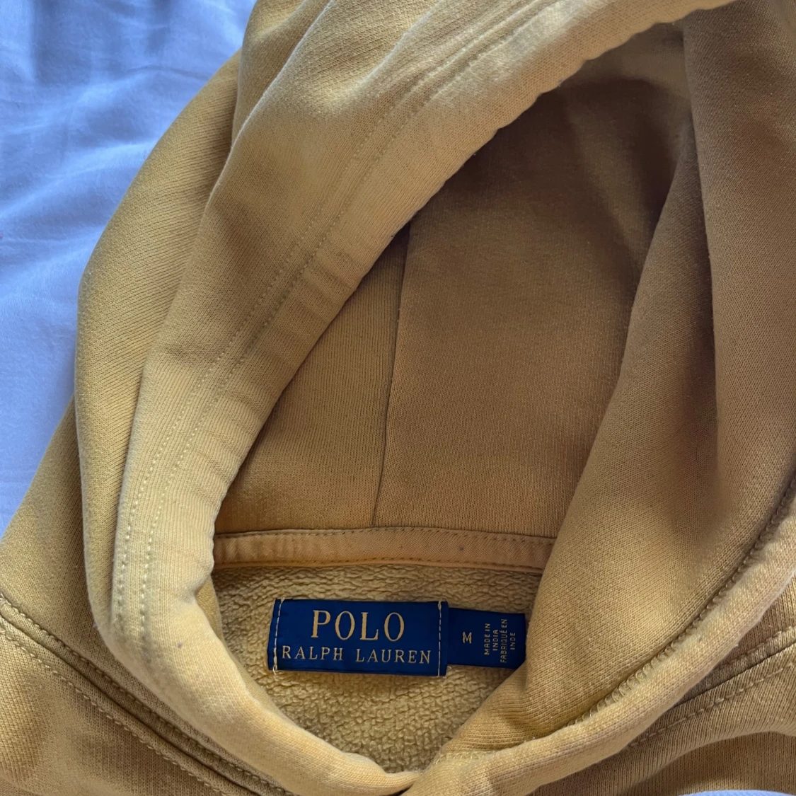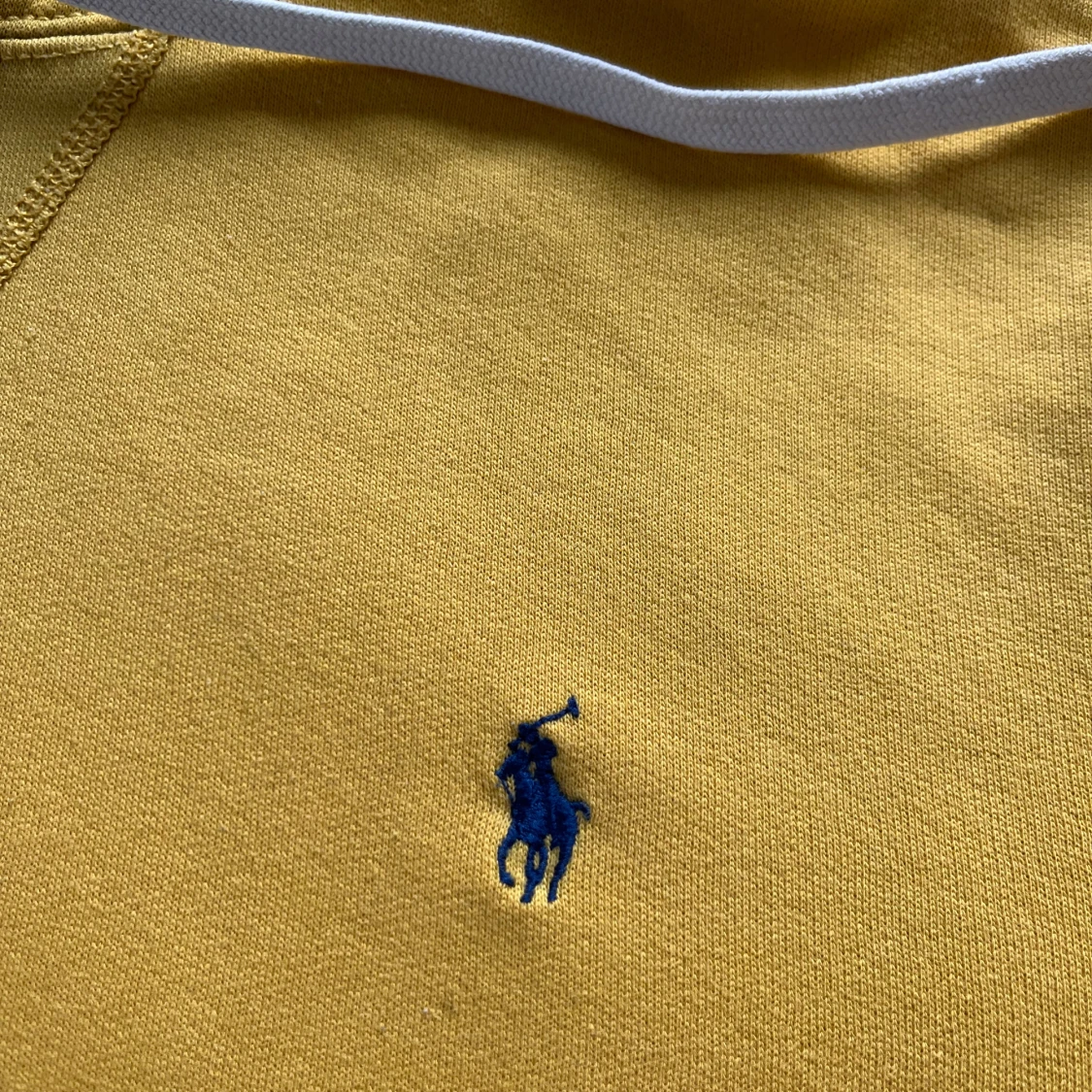 Gul hoodie från Polo Ralph Lauren med klassisk blå broderad logga på bröstet. Tröjan har huva med vit snörning och en stor magficka. Tillverkad i mjuk bomull, perfekt för chill dagar. Långärmad och normal passform.