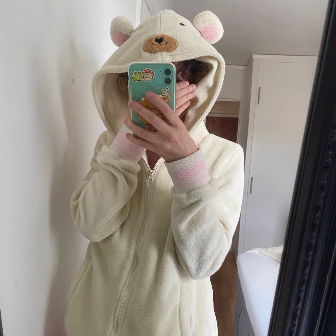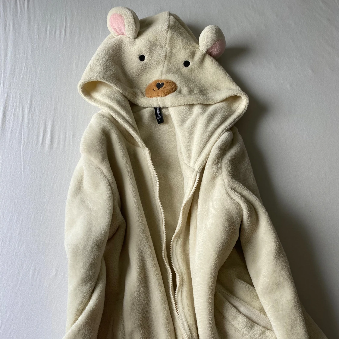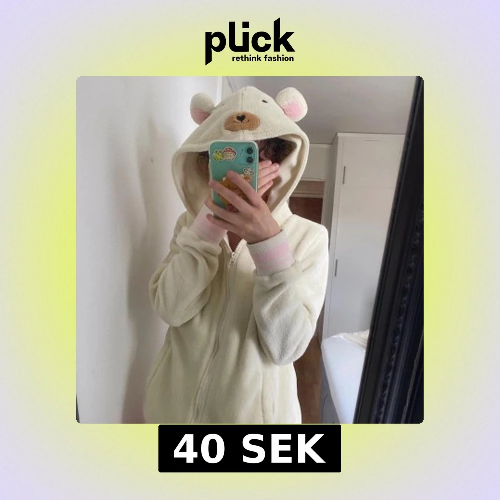Supersöt hoodie med nalle ansikte och öron 🐻 Använd men i fint skick! Storlek L men mer som en S.