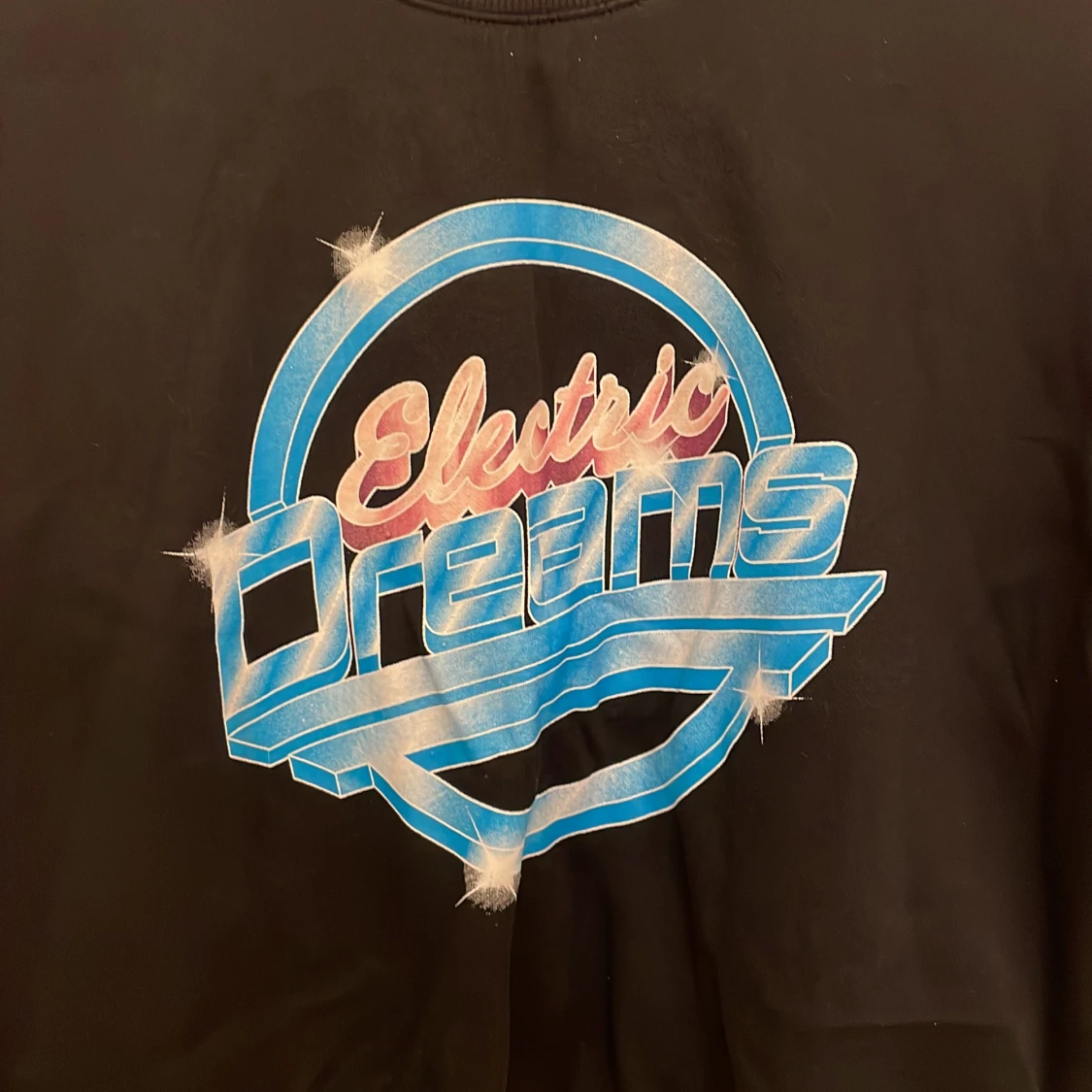 Säljer denna svarta sweatshirt med tryck ”electrical dreams” då den inte används. Använd någon gång bara.