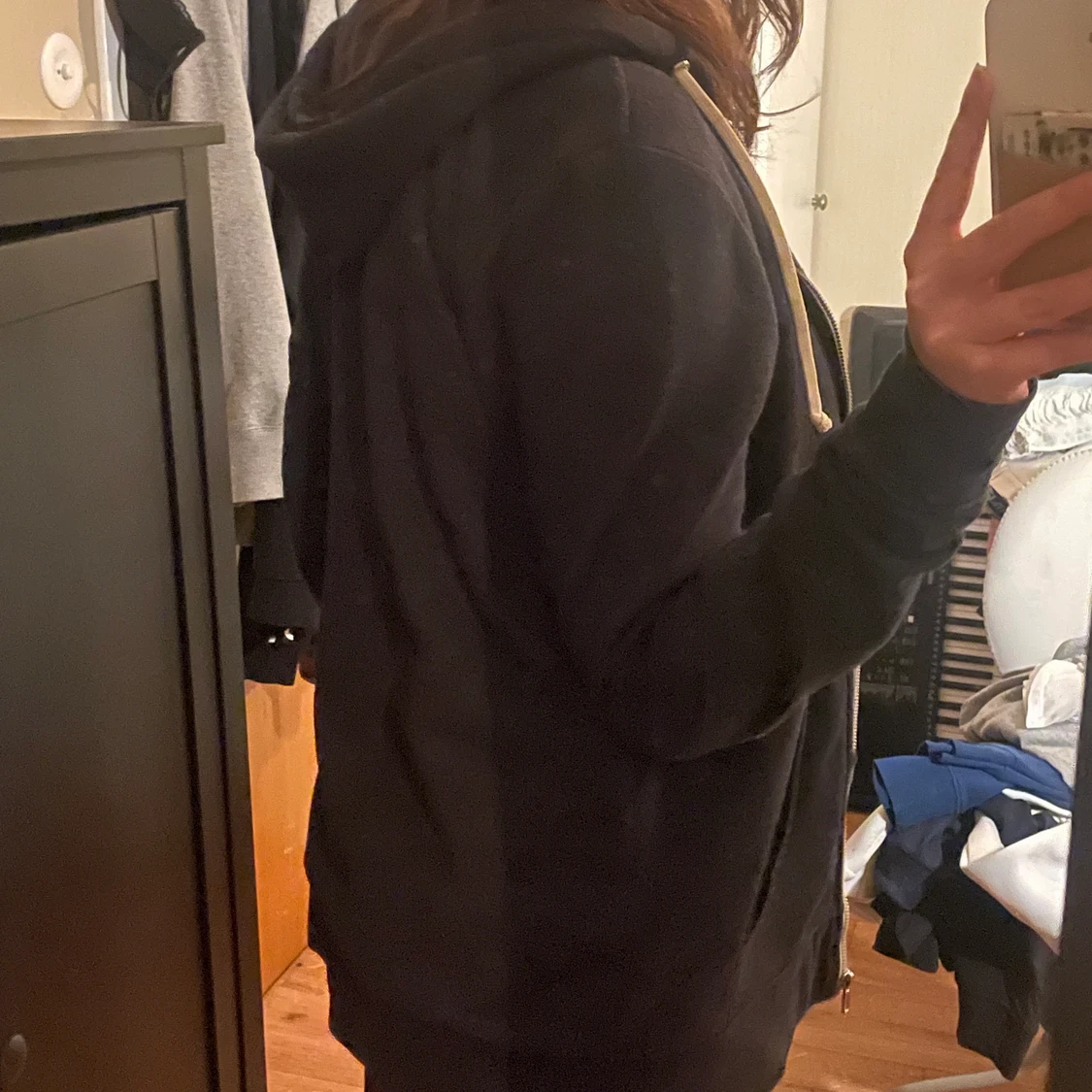 En enkel zip up hoodie i mörkblå färg, stabilt material som är svinskönt 😻 Storlek S men väldigt oversized! Varm och snygg till allt! Frakt tillkommer, kan diskuteras 🙂