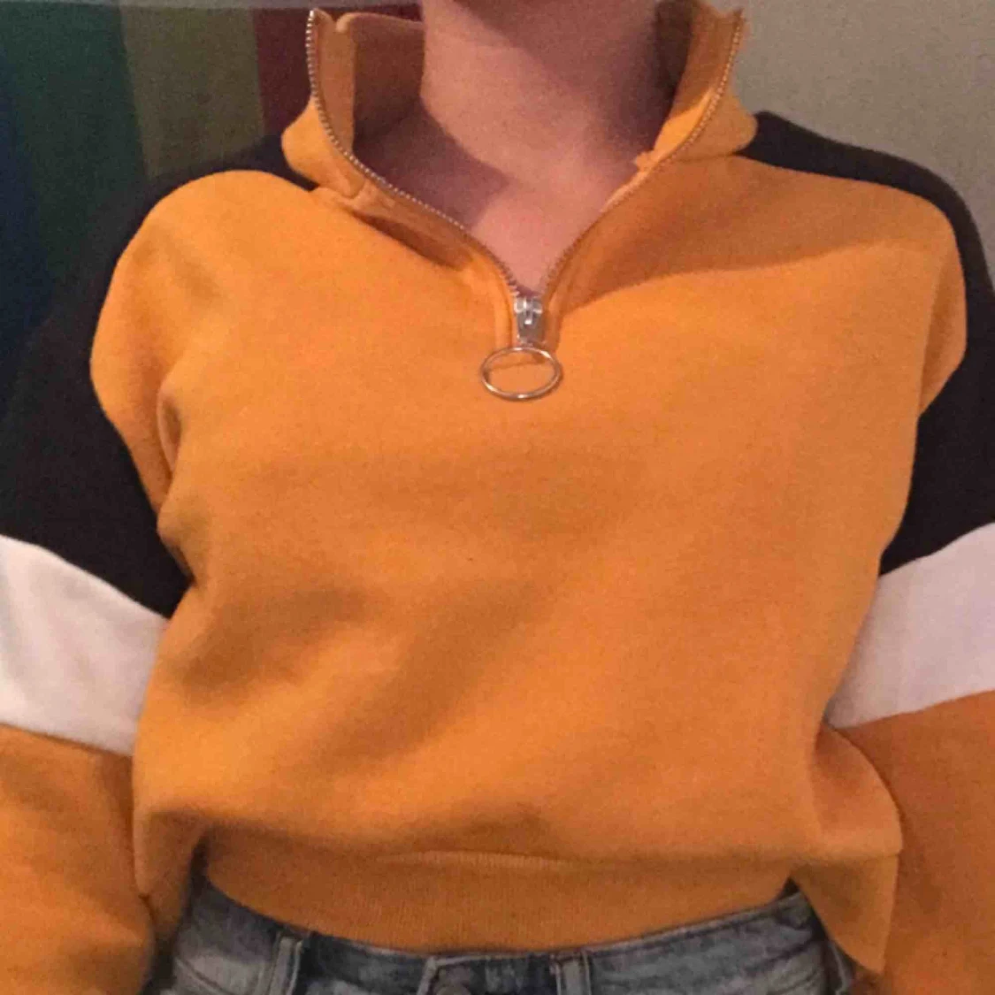 Gul vit & svart hoodie med dragkedja, långärmad lite tjockare material (pris kan ändras)