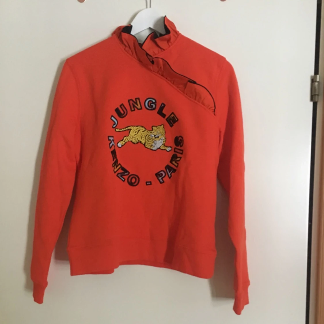 KENZO x HM sweatshirt, orange med broderat tryck ned guldknappar. Aldrig använd.