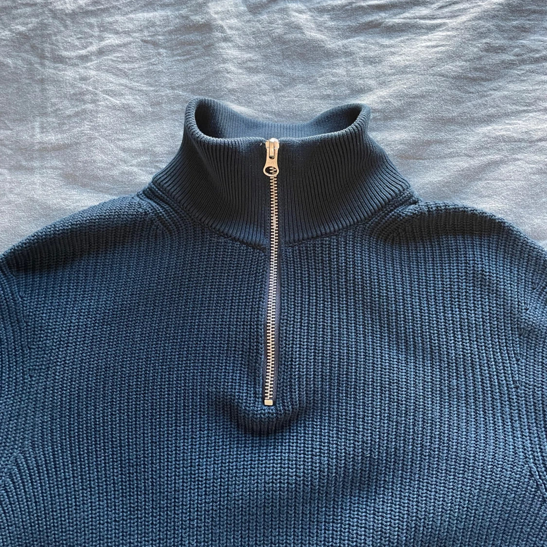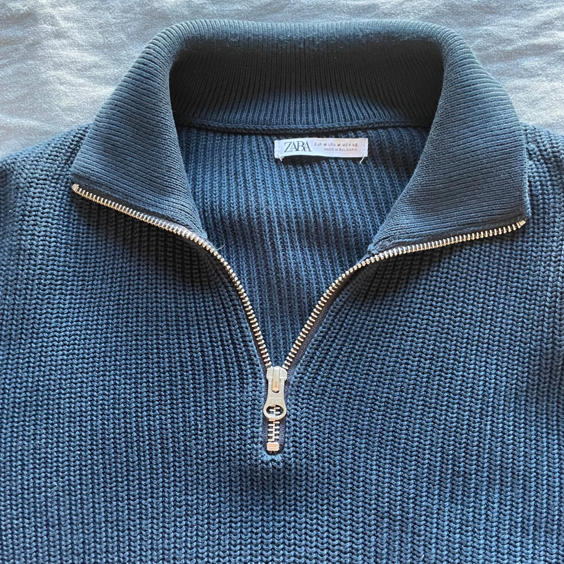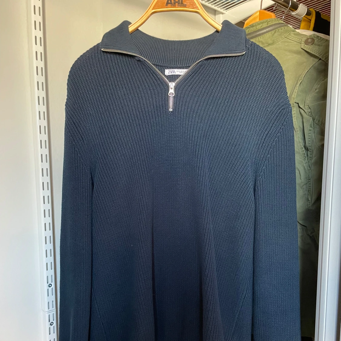 Tja! Nu lägger vi ut denna snygga half-zipen från Zara för ett bra pris. Mörkblå med ett stil rent stickat mönster. Perfekt nu när hösten kommer!! Skick:8/10 Pris:549