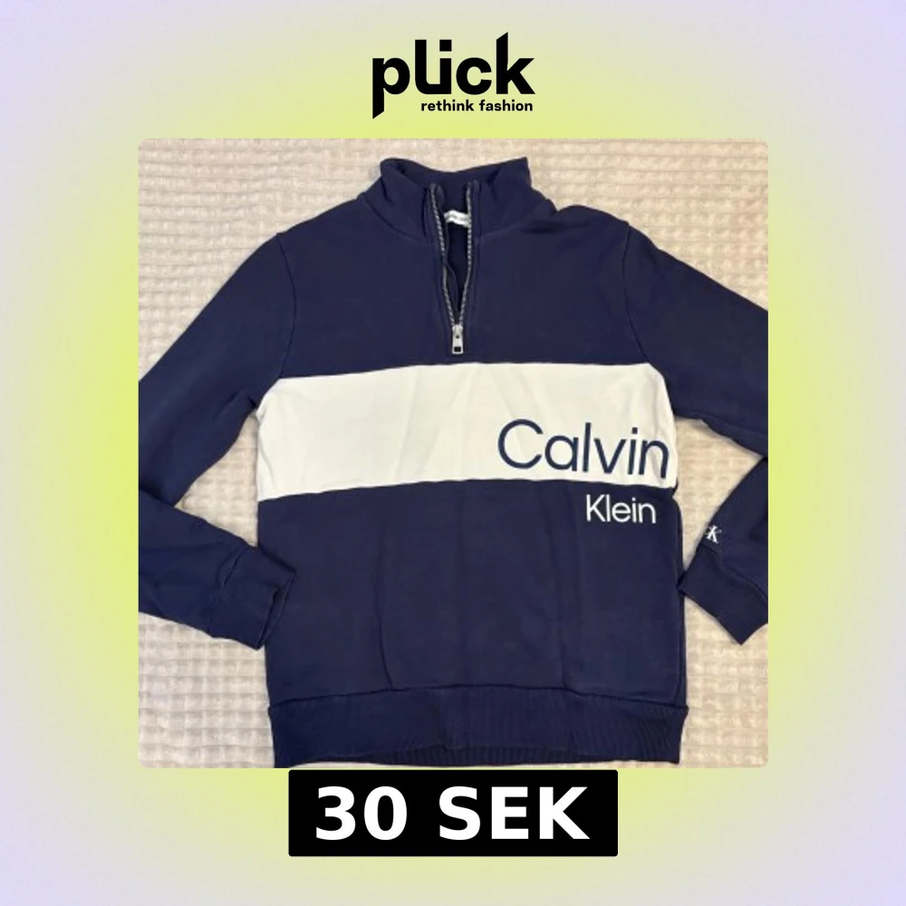 Snygg marinblå tröja från Calvin Klein . Tröjan har half zip, och långa ärmar. Bra använd men inga defekter