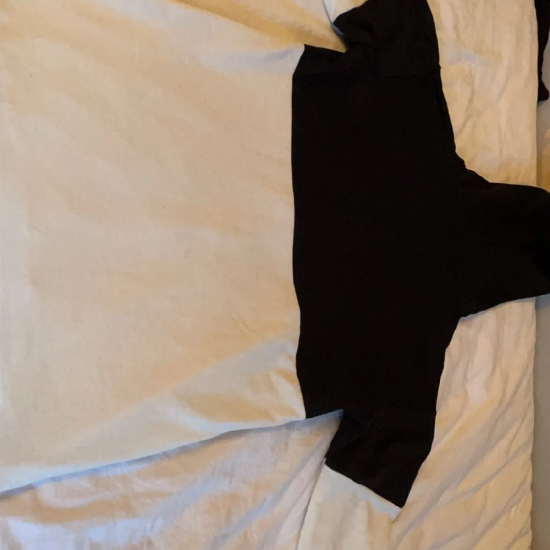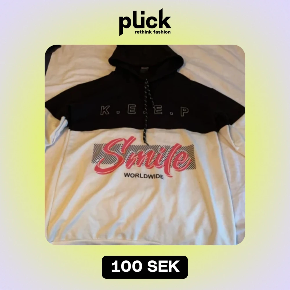 En tunn halv svart och vit hoodie med rosa text på framsidan. Använd några gånger och nytvättad.✨🖤🤍