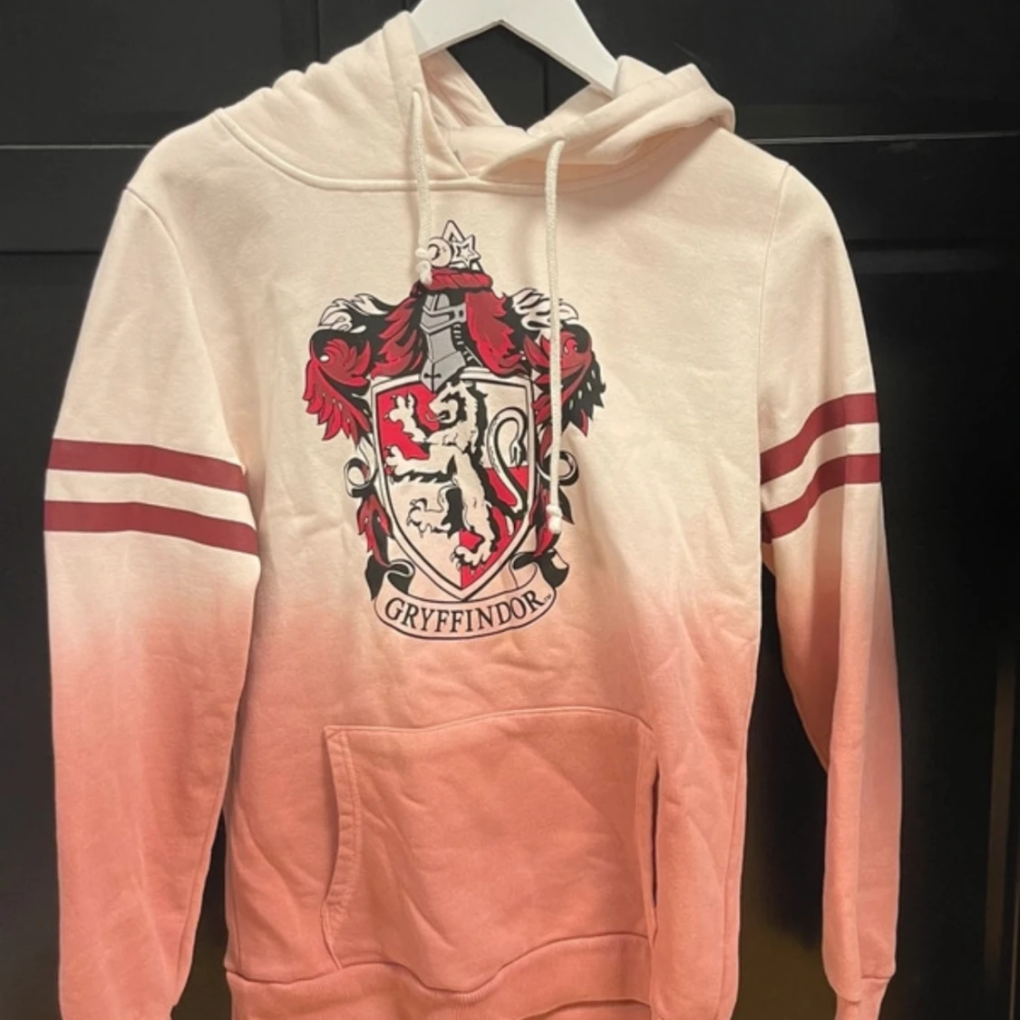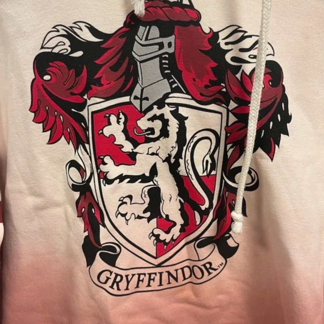 Rosa Harry Potter hoodie. Griffindor. Den är köpt för 600kr och är använd 2-3 gånger. Den är super fin och i rejält bra skick. Den är i bra kvalitet och är mjuk och gosig inuti