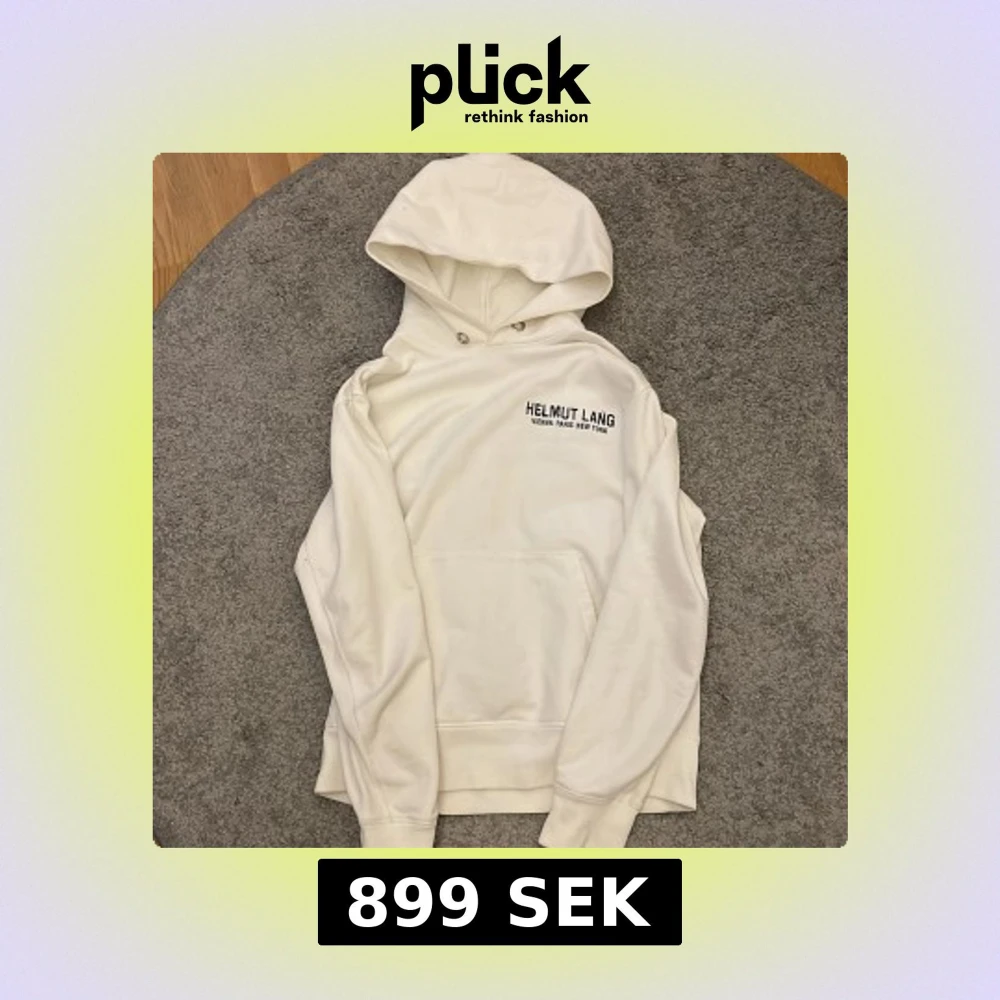 Asfet helmut lang hoodie! Ser simpel och clean ut på framsidan med ett utstående tryck på ryggen! Inga hål eller skador på hela hoodien! Köpt på vinted och inte använts så mycket sedan dess då den inte sitter som jag önskar. Storlek M kan passa L! Skriv privat vid fler frågor