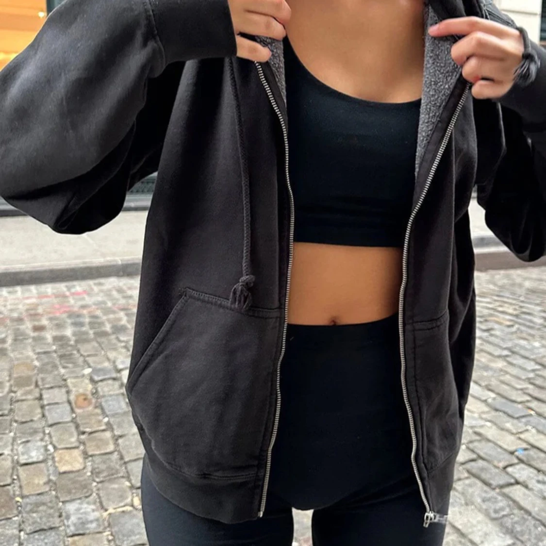 Svart Brandy Melville hoodie, köpt för över 500 kr, aldrig använd pga har dubbletter. Det är superbra kvalite, tjock bomull som ej nopprar. Regular fit one size (Storlek xs-m)
