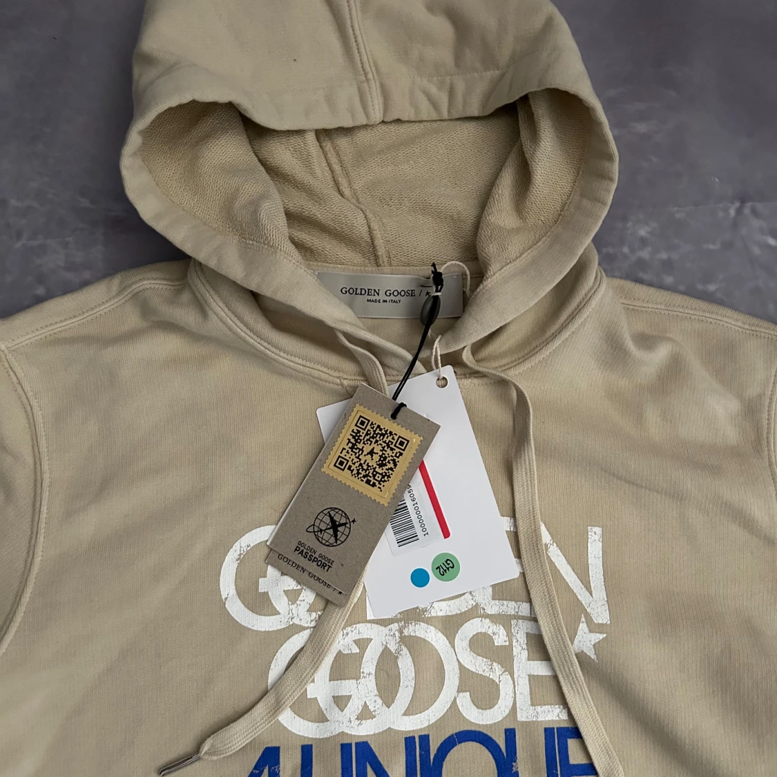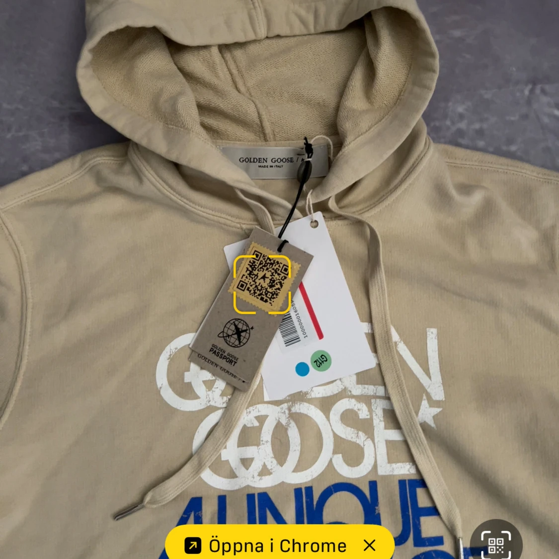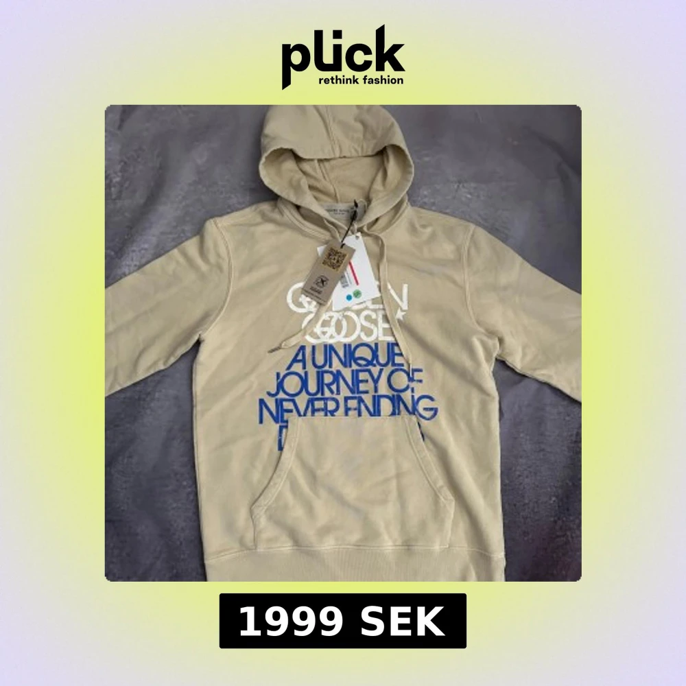 Helt ny golden goose hoodie i perfekt skick. Storleken är Xs men passar mig som är 187 cm lång 73kg(sista bild), så skulle säga att den sitter som S om inte M. nypris på dessa ligger runt 6000kr, men vi säljer för endast 1999kr
