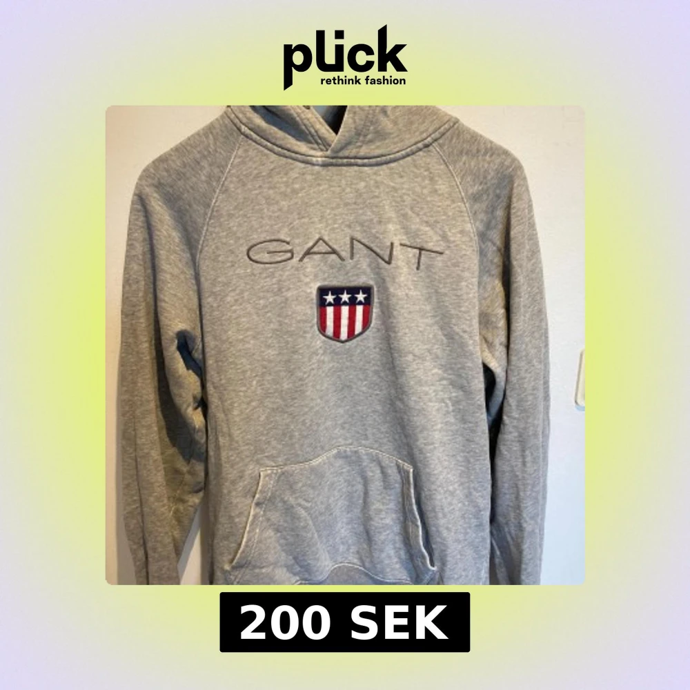Säljer en använd grå hoodie från GANT i bomull med broderad logga och sköld på bröstet. Tröjan har huva och en stor magficka framtill. Perfekt för en avslappnad stil. Skriv om du undrar något. Pris kan diskuteras