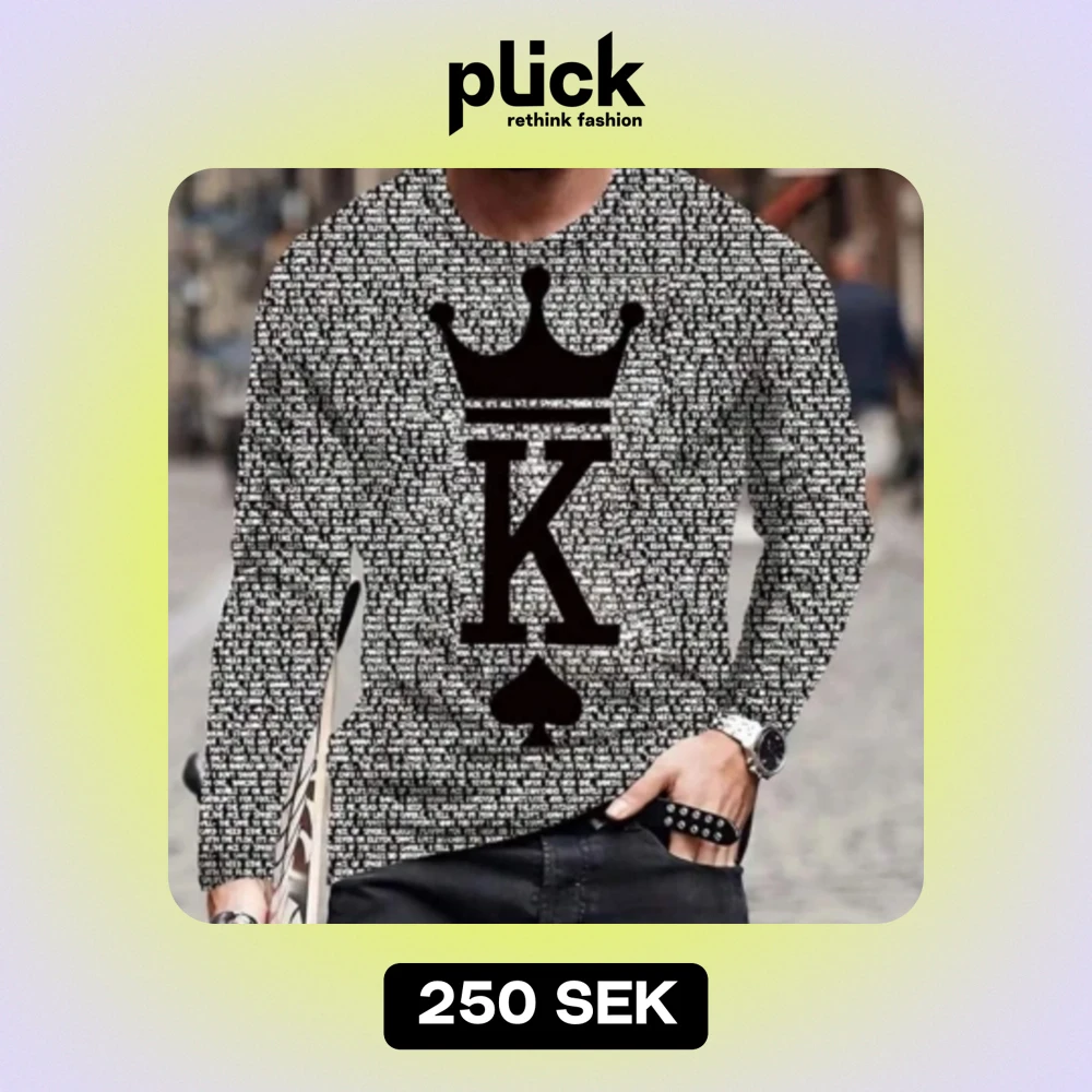 Herr Krona & Text Tryck Lång Ärm T-shirts