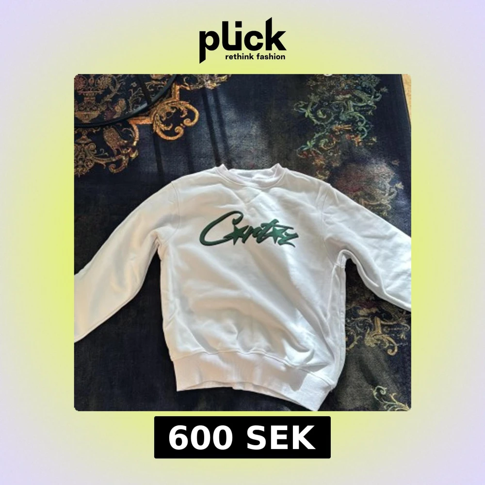 Vita shorts från corteiz med en stor grön logga längs ena benet. De har resår i midjan och snörning för extra komfort. Perfekta för en avslappnad stil under varma dagar. Och me en super fin corteiz sweatshirt