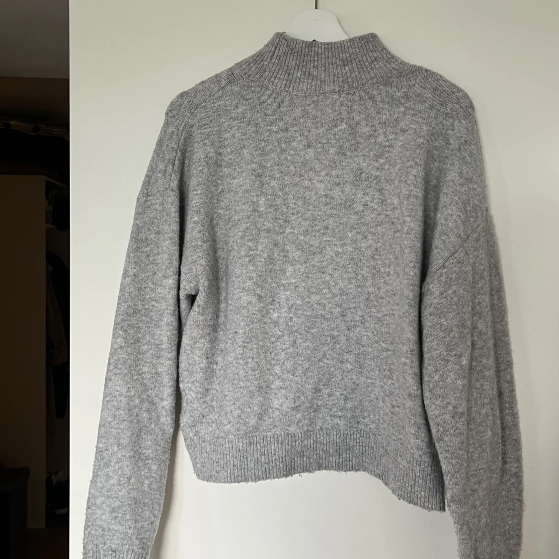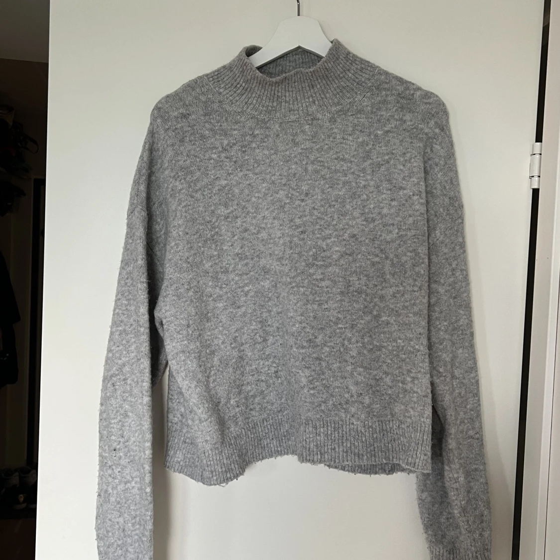 En stickad grå tröja från h&m, storlek s, lite högre krage