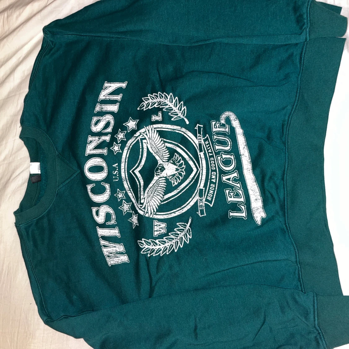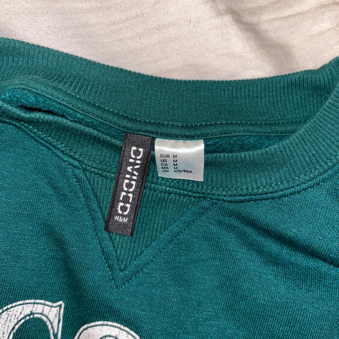 Grön mjukis tröja med vita text detaljer, utan luva. Den är i bra skick, sälj pga använder inte 💕