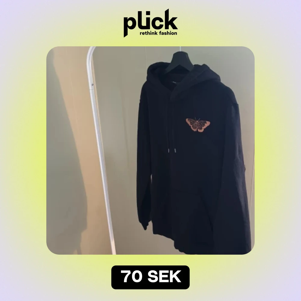 Hoodie med kopparfärgad broderad fjäril i storlek M. I gott skick. Från H&M därför billigt pris.