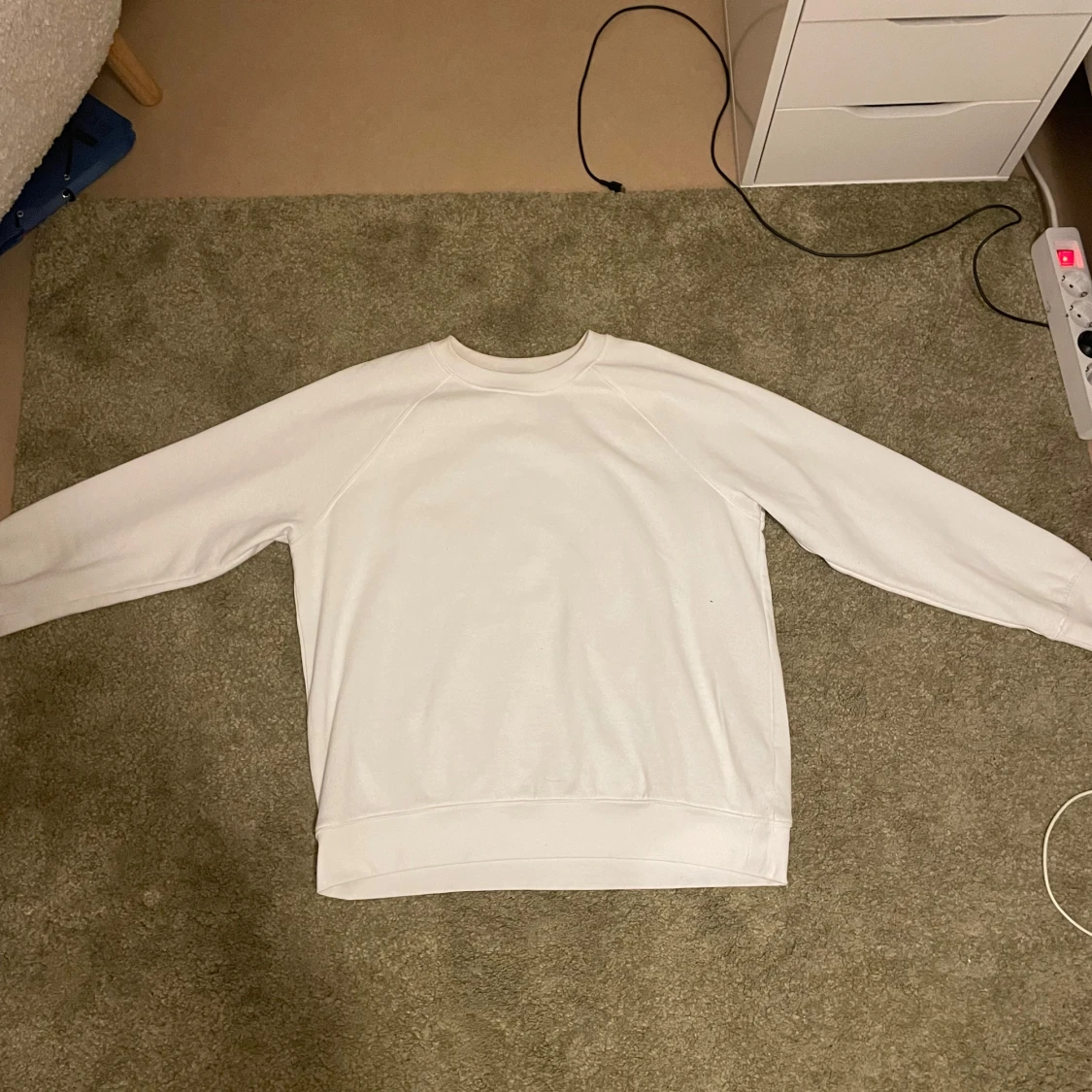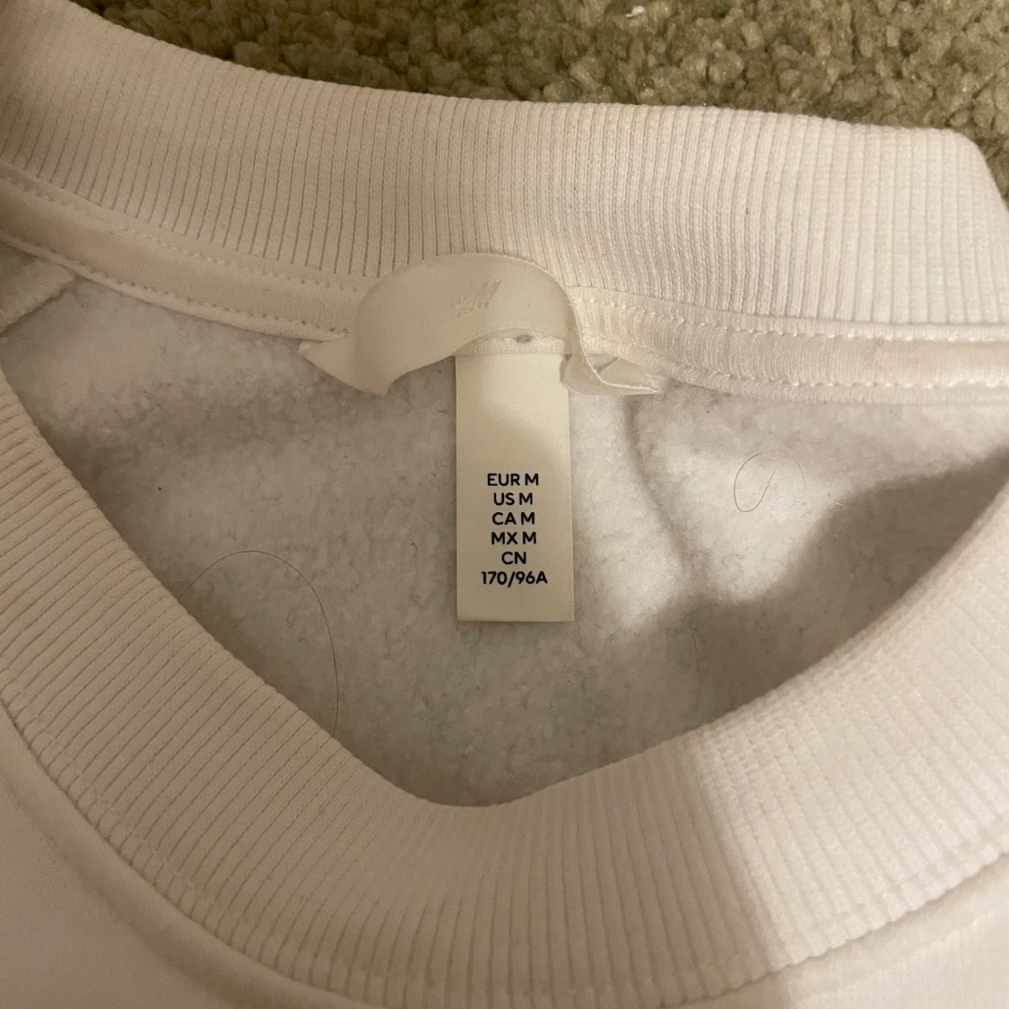 En basic vit sweatshirt från H&M i mjuk bomullsmix. Tröjan har rund halsringning, långa ärmar och ribbade muddar vid ärmslut och nederkant. Perfekt för en clean och enkel stil.