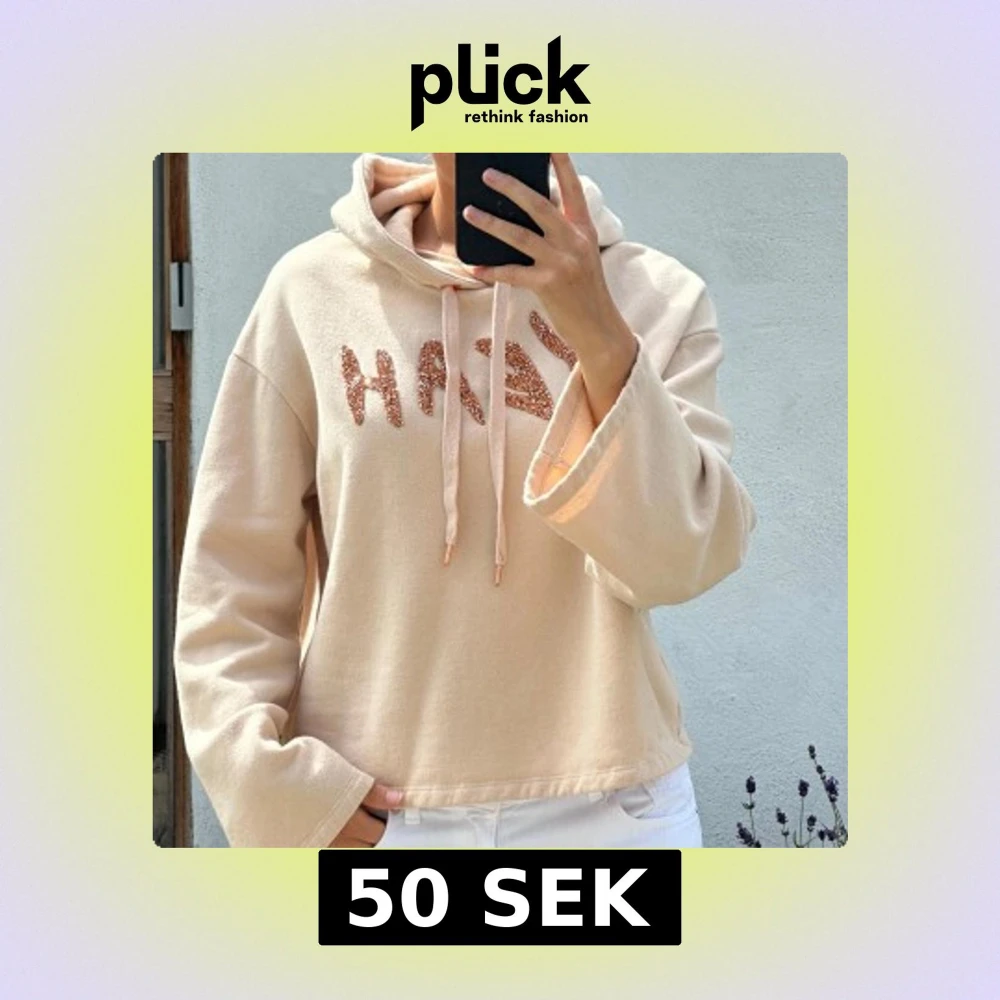 Beige hoodie med glittrig text