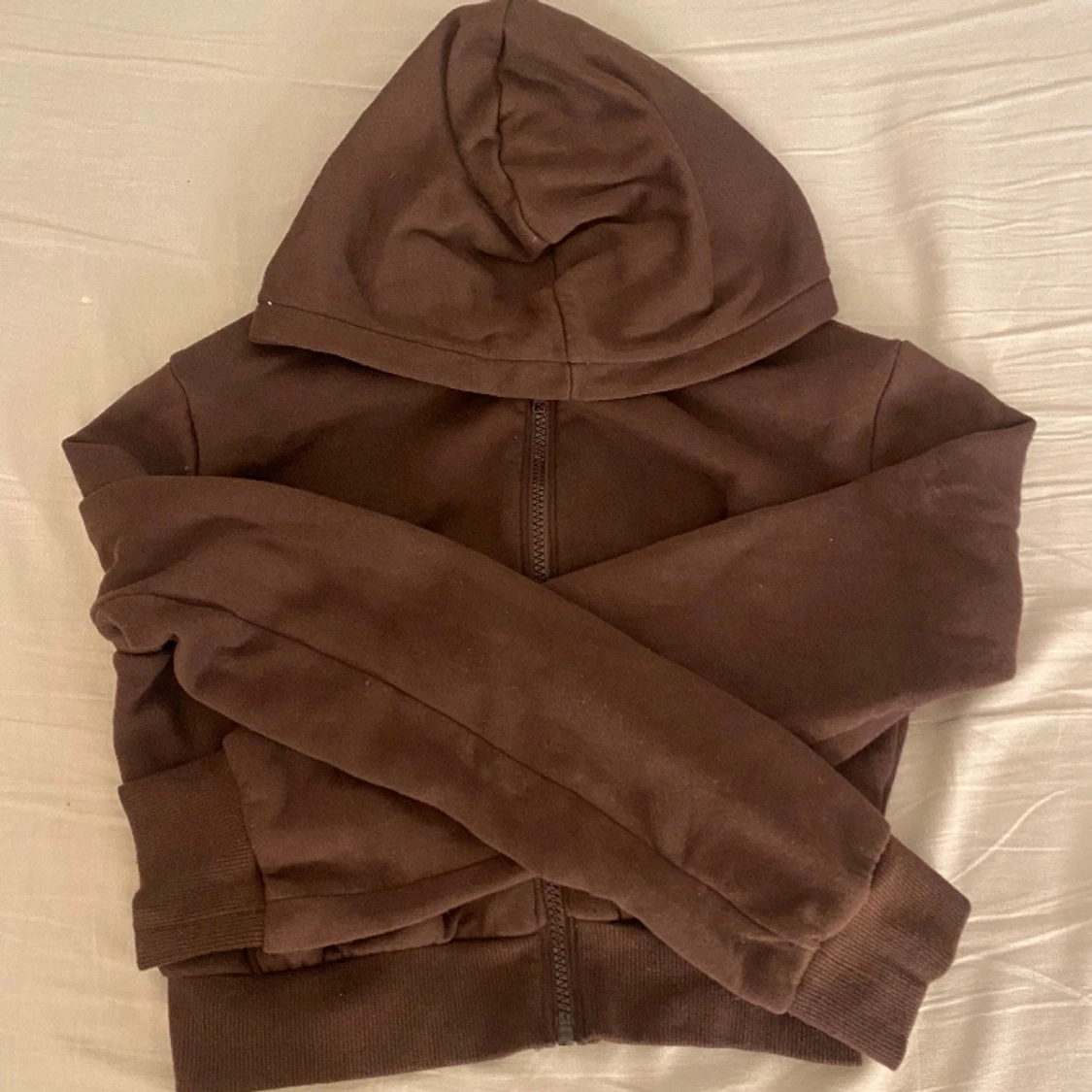 Säljer denna jättefina croppade bruna hoodien från H&M. Säljer då den inte kommer till användning längre. Har inte används många gånger och är i bra skick. OBS! Tvättar alltid plaggen innan jag skickar iväg dom.