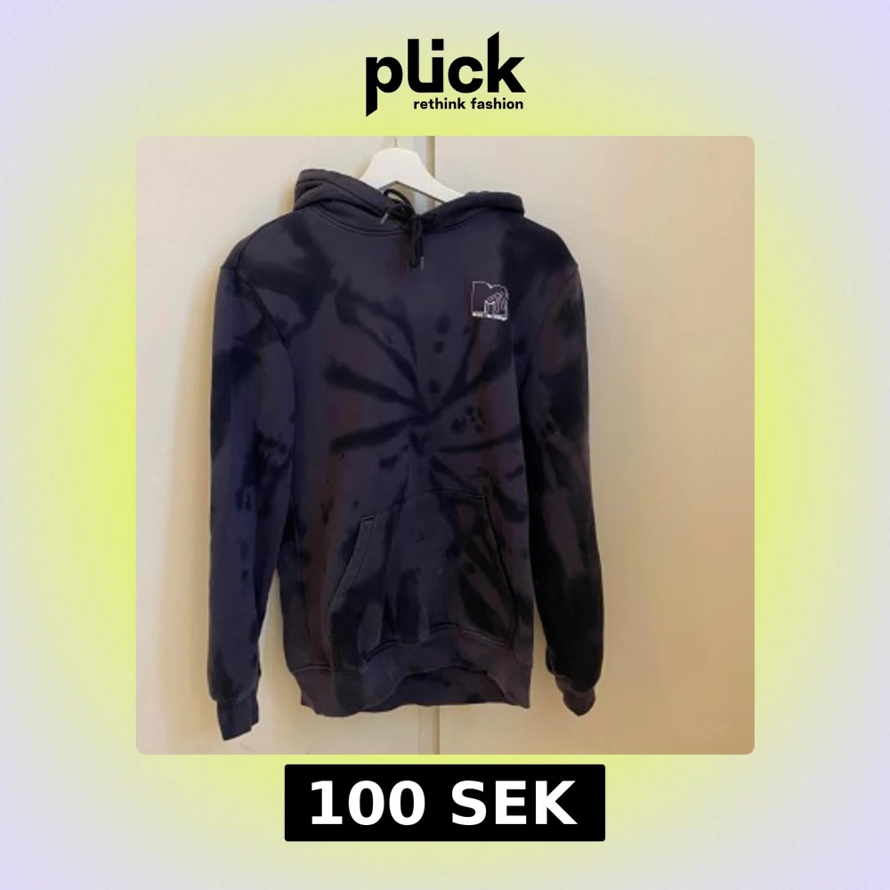 Säljer en mörkblå hoodie från MTV/H&M med stort vitt Music Television-tryck på ryggen och mindre logga fram. Tröjan har huva med snörning och coolt tie-dye mönster. Perfekt för dig som gillar retrostil och streetwear.