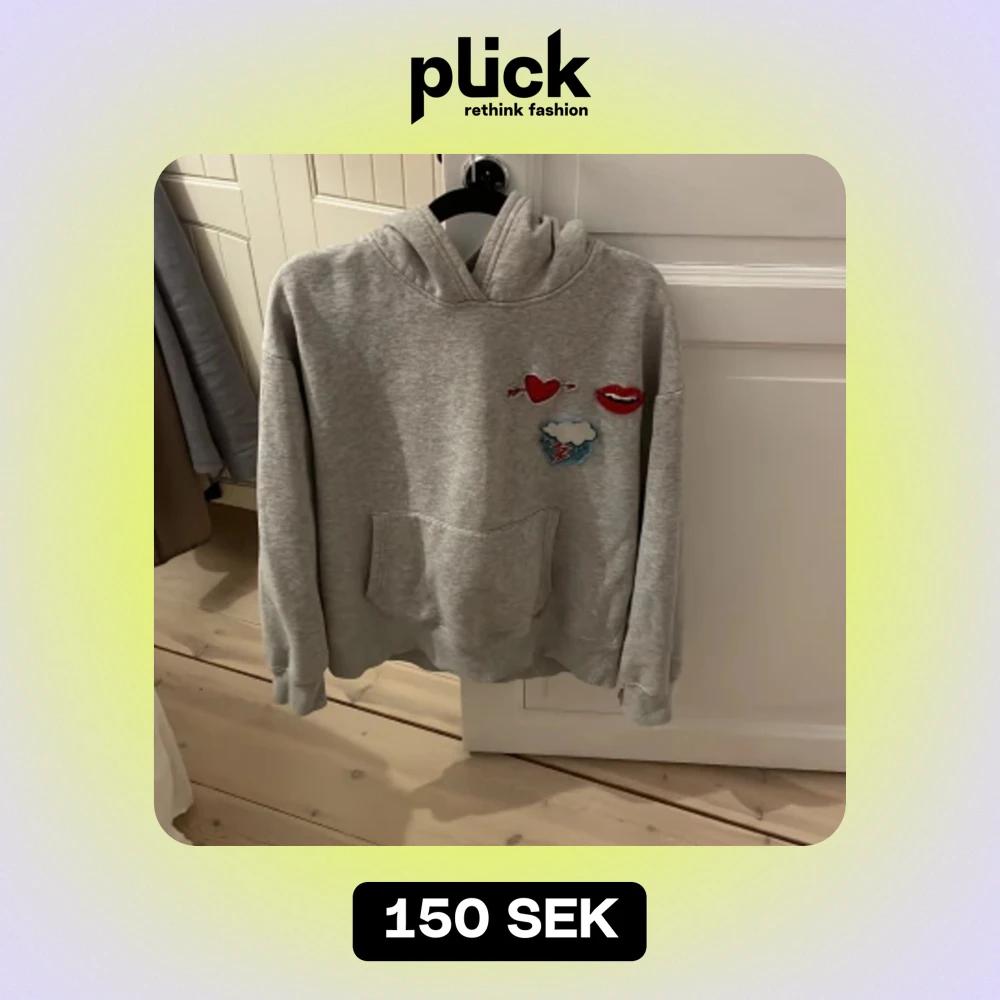 Det här är en hoddie med tryck på framsidan. Det är storlek m men passar som s/m. Jag säljer den då den inte kommer till användning. Om du vill fråga något är de bara och skriva.