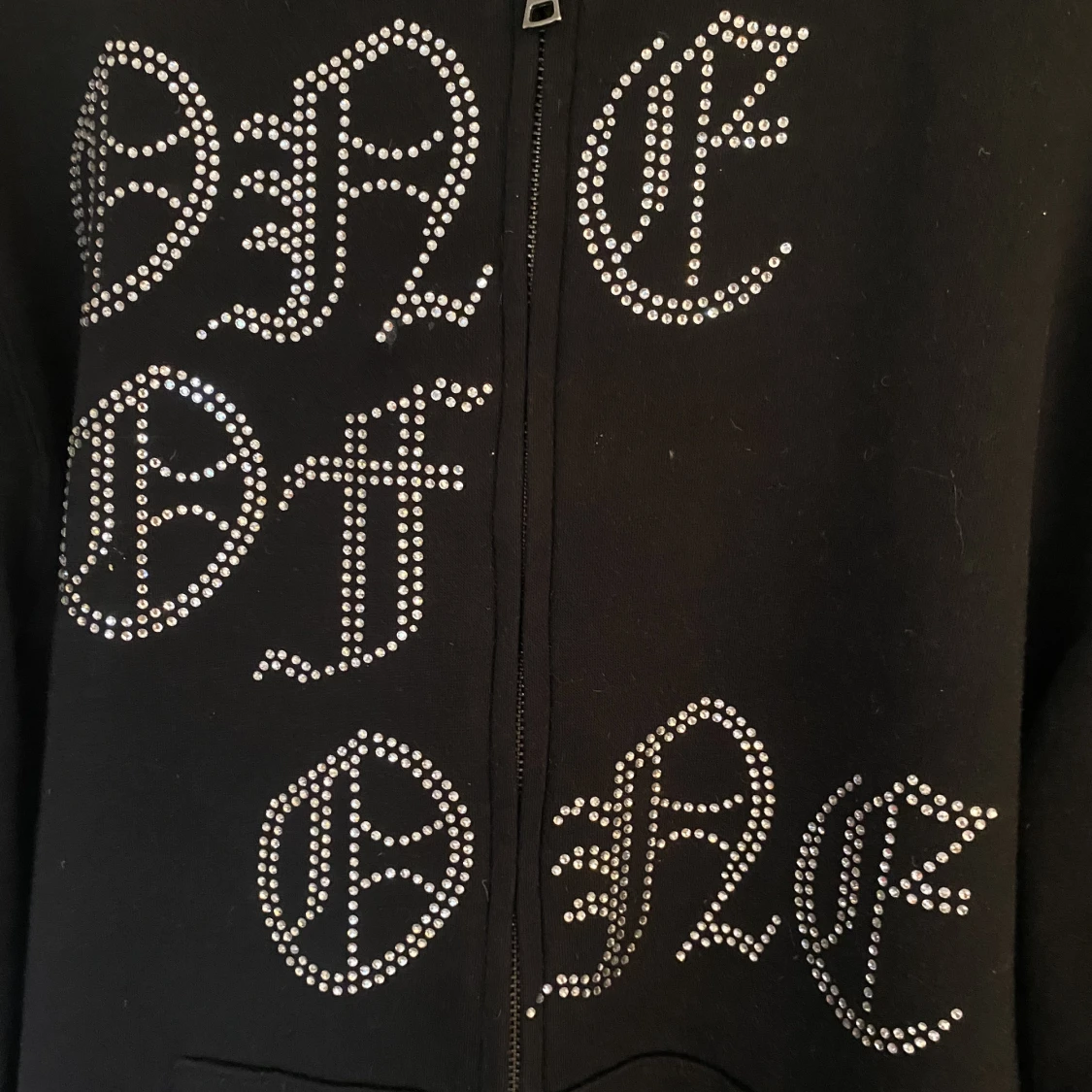 Fin one of one hoddie i strl M! Som nyskick, inga synliga noppror osv. Alla stenar är kvar❤️säljer eftersom den är för stor för mig