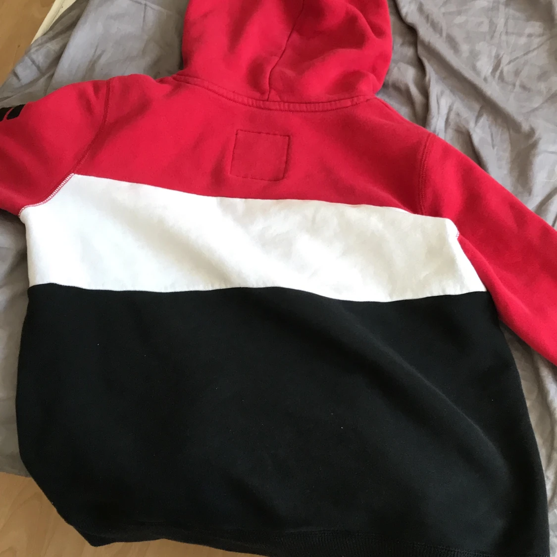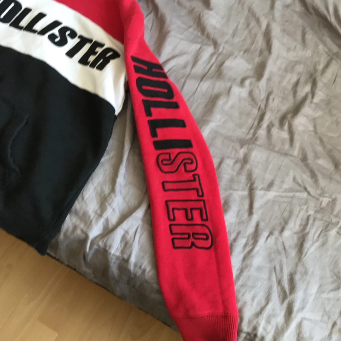 En röd/svart/vit jätte fin hoodie från hollister, nästan aldrig använd för har inte haft rätt tillfälle, nu är den för liten