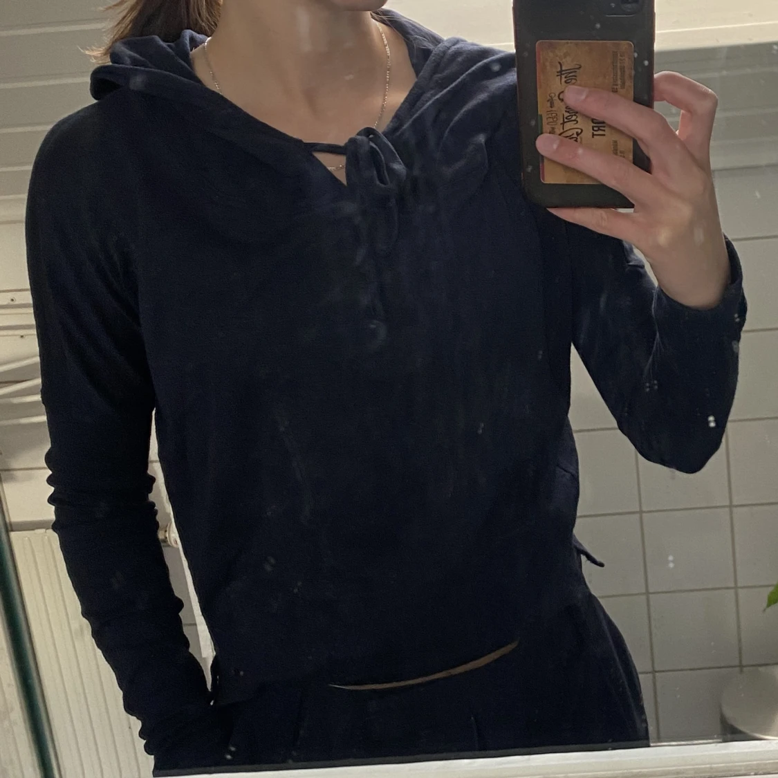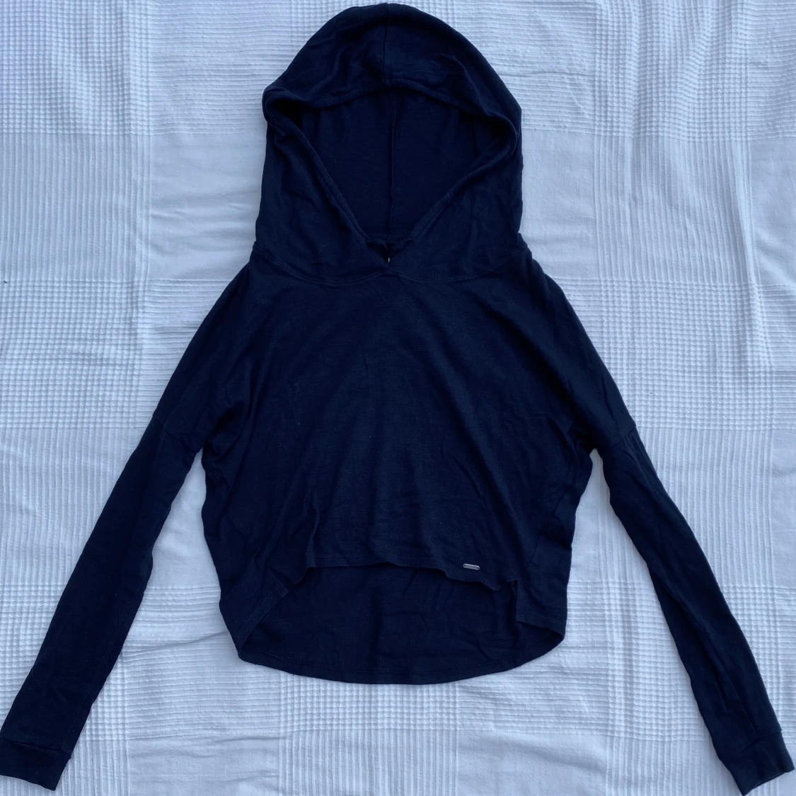 Tunnare huvtröja från Hollister köpt i Kalifornien några år sedan. Jättesnygg och perfekt till sommarkvällar! Mörkblå färg och bra skick.