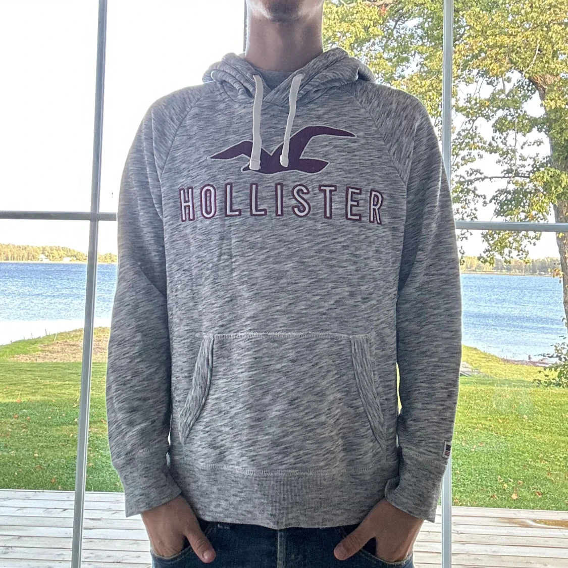 Grå Hollister hoodie i mycket bra skick | Storlek: S | Jag är 182cm och väger 65kg📏| Vid frågor eller diskussion om pris är det bara att skriva✍🏼| Frakt inom 48h📦