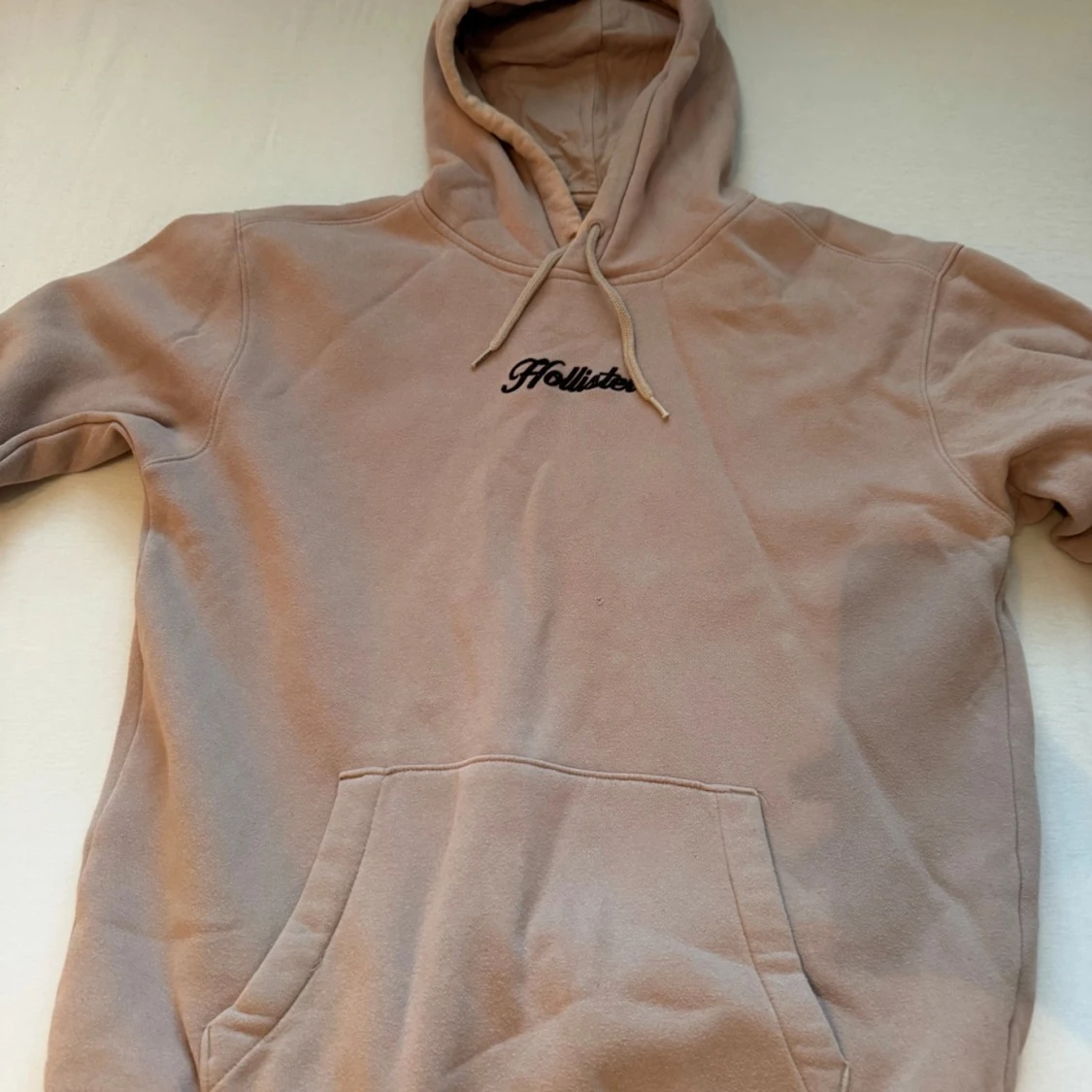Säljer en supermjuk och bekväm beige hoodie från Hollister. Perfekt för mysiga dagar eller en avslappnad stil. Den har en klassisk känguruficka och justerbar huva med snören. Hollister-loggan är snyggt broderad på bröstet. Passar perfekt till höst och vinter!