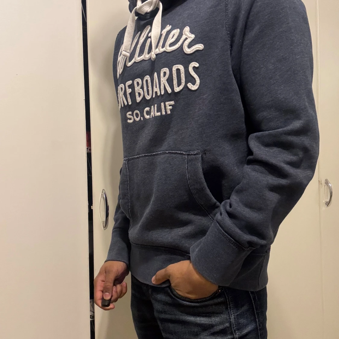 Vintage och sällsynt Mörkblå Hoodie från Hollister med vit text på bröstet och klassik kängauruficka | Storlek M | Vintage och extremt svår att finna! |Går ner i pris vid snabbt köp! | Är 175, väger 70kg | Hör av vid ytterligare frågor!!!