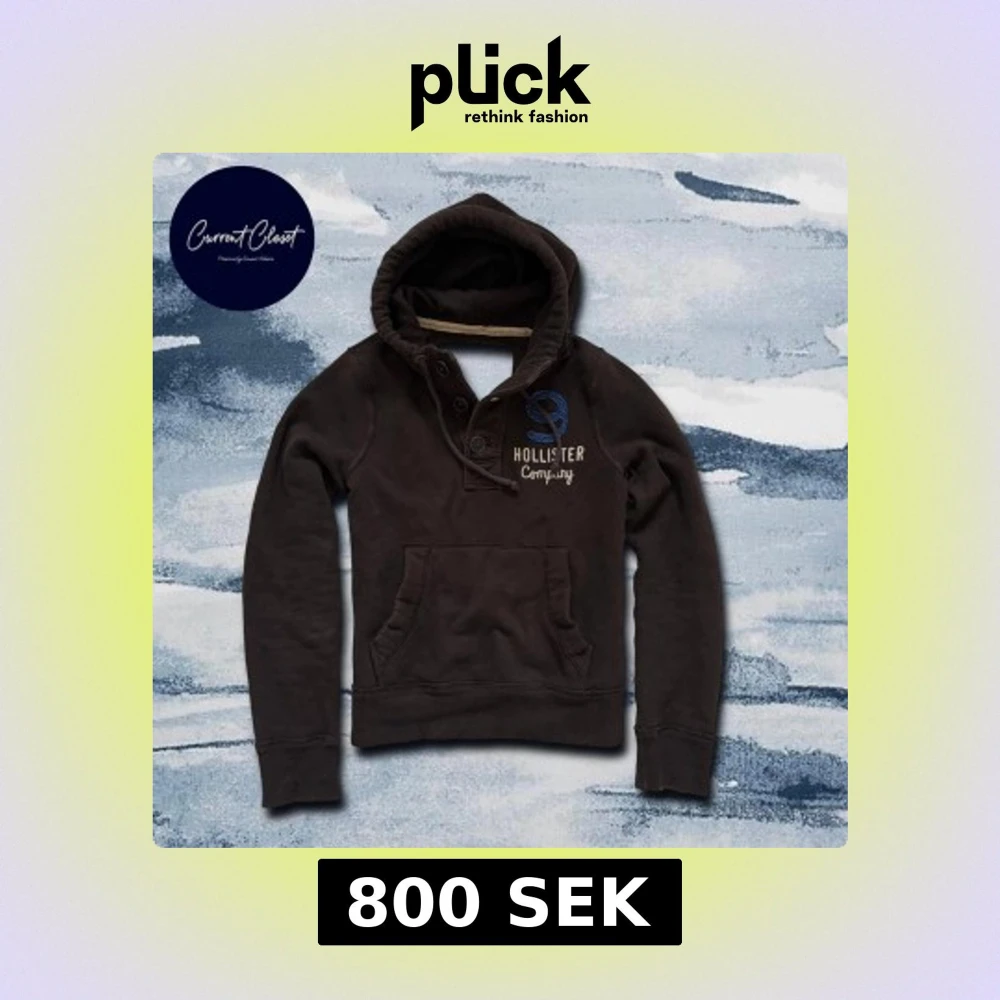 Mörkbrun hoodie från Hollister med broderad blå siffra och text på bröstet | Size S | Har nästan inga defekter trots vintage!