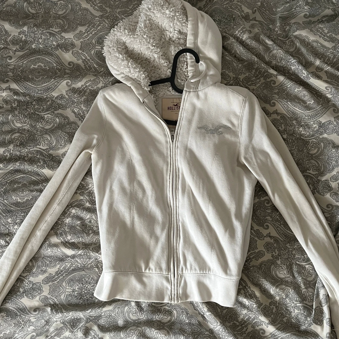 Skitsnygg hoodie från hollister i storlek xs med fluff i luvan och glittrigt märke. Varm och snygg till vintern😊🙏