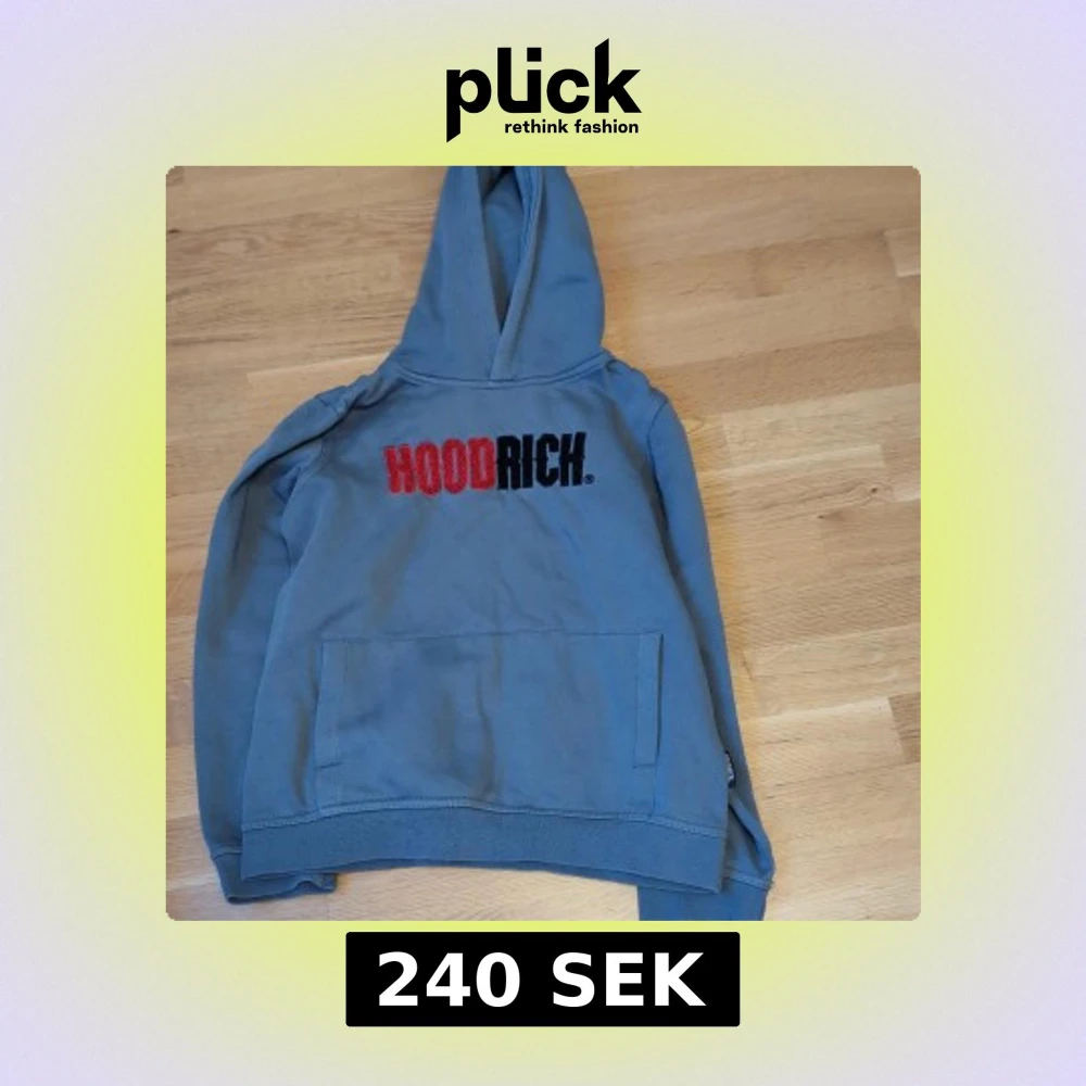 Säljer en hoodrich tröja storlek 12-13år L. tröjan från jd med stor ficka framtill och texten 'HOODRICH' i rött och svart på bröstet. Tillverkad i 80% bomull och 20% polyester, perfekt för en avslappnad stil.
