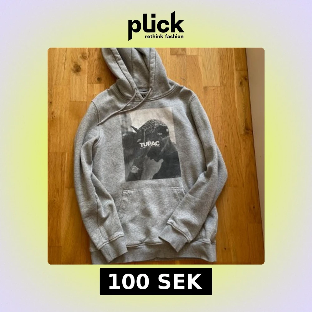 Snygg grå hoodie från Mister Tee med stor svartvit Tupac-print på bröstet. Klassisk känguruficka, huva med snörning och mjukt material. Hoodien är välanvänd men har inga defekter.