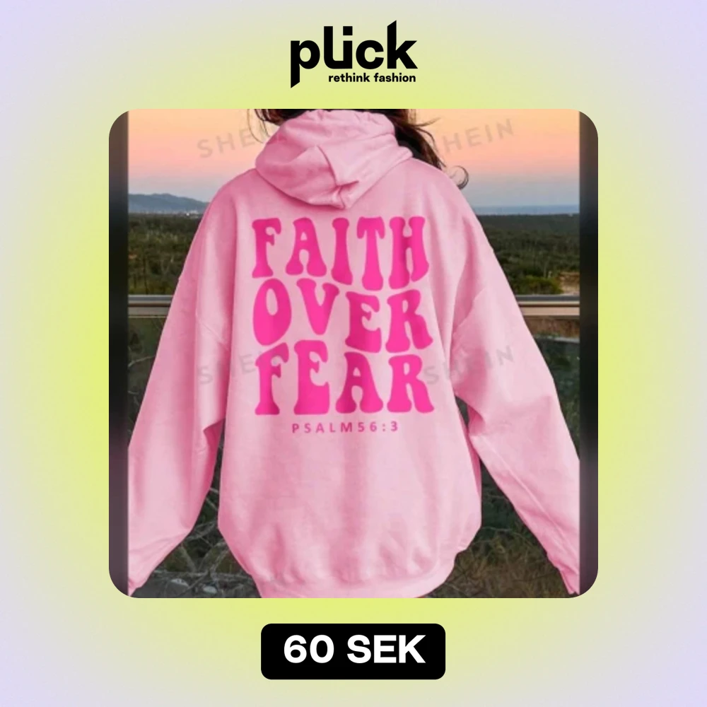 Rosa hoodie med text på ryggen från SHEIN i ny skick, använd endast vi provning, det är SHEIN ”material på hoodie om du förstår, i övrigt en väldigt fin hoodie i storlek S