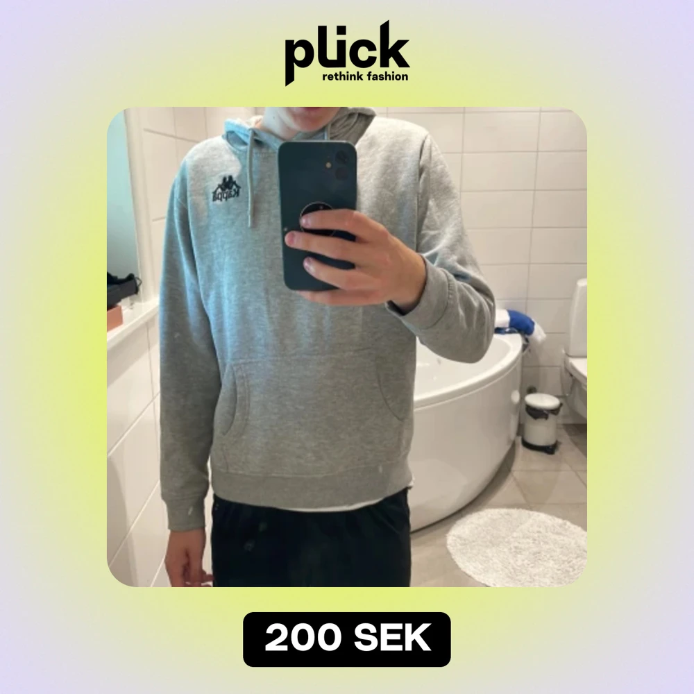 Säljer en grå hoodie från märket Kappa. Skicket på tröjan är nästintill perfekt förutom en liten fläck på armen som man ser på bild 2