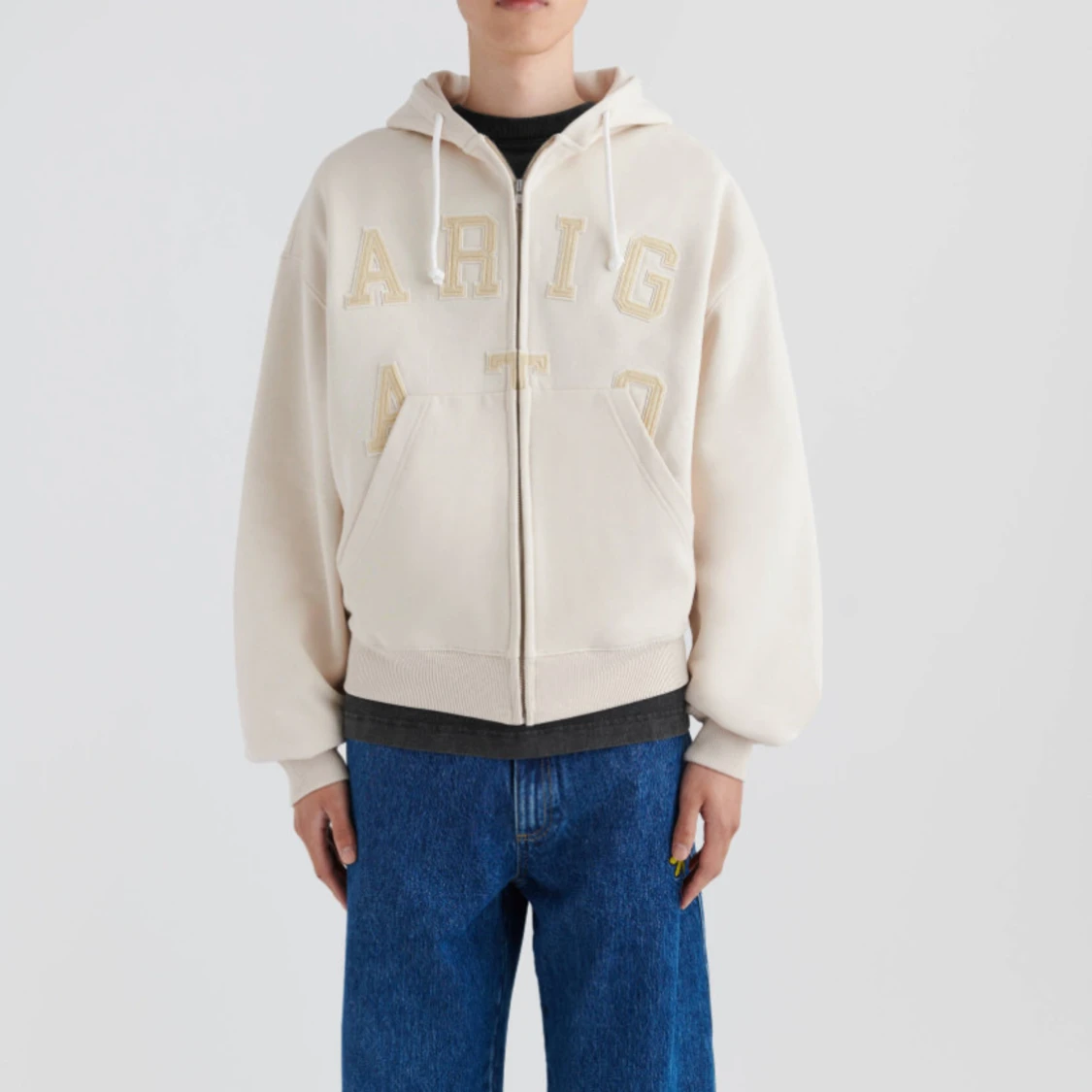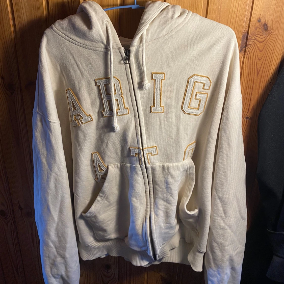 Beige Arigato Zip Hoodie, äldre modell men fortfarande mycket liv i sig. 8/10 Cond, inga hål eller fläckar. Strl L men det är oversized och cropped.