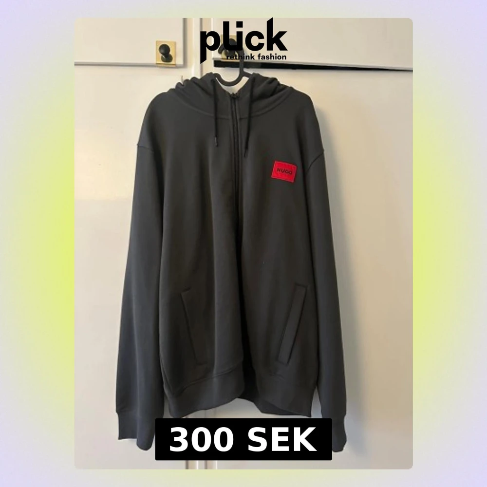 Snygg mörkgrå hoodie från Hugo med röd logotyp-patch på bröstet.