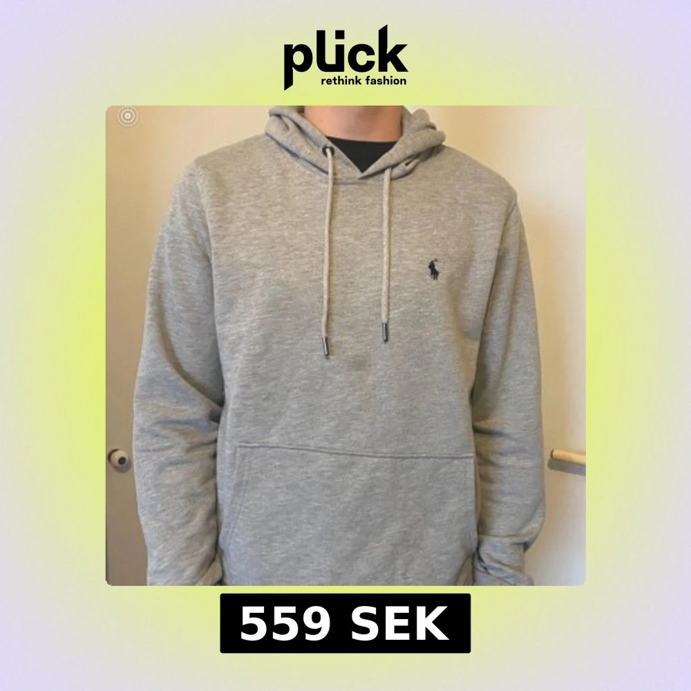 Säljer en grå hoodie från Polo Ralph Lauren. Den har en klassisk design med dragsko i huvan och en praktisk magficka. Den har dock ett litet hål som man ser på den sista bilden. Den syns dock knappast när man använder den.