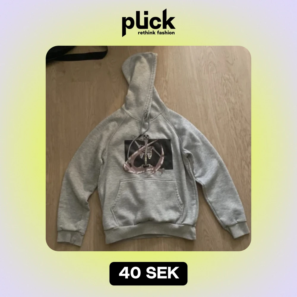 En grå hoodie med bild på ett skelett i mycket bra skick! 😊