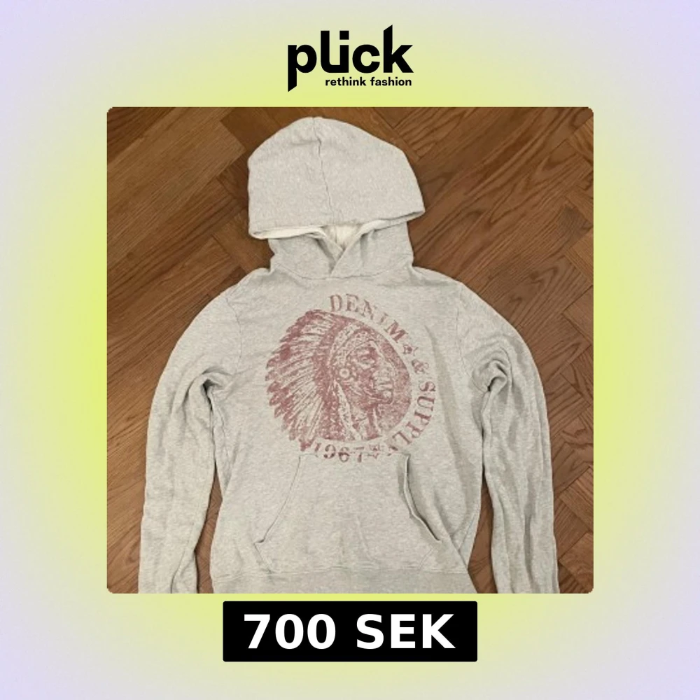 Ljusgrå hoodie från Denim & Supply med stor röd vintageinspirerad print framtill. Tröjan har huva, magficka och långa ärmar. Perfekt för allt!
